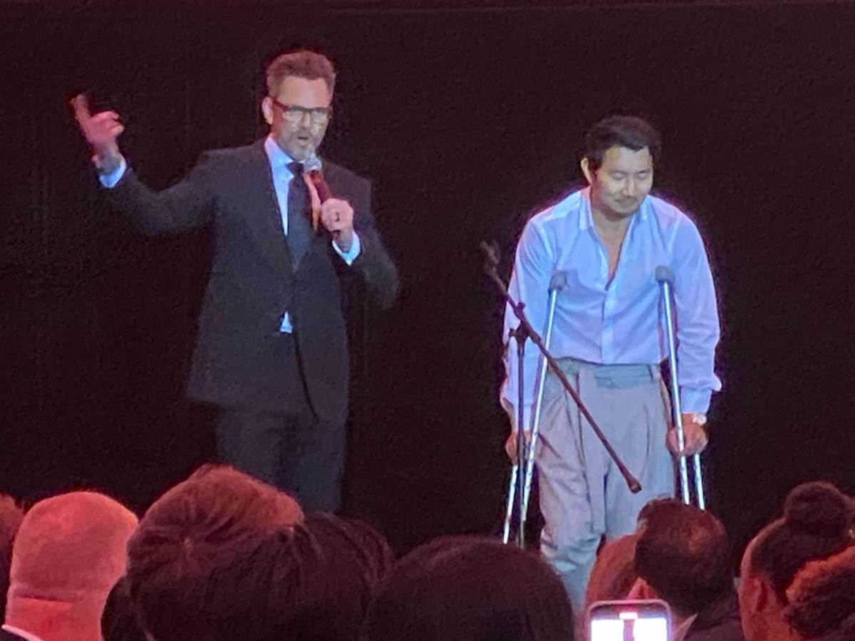 The ceremony itself featured appearances by Shang-Chi and the Legend of the Ten Rings star Simu Liu (unfortunately on crutches due to having injured his achilles tendon), The Marvels star Teyonah Parris, Doctor Strange in the Multiverse of Madness star Xochitl Gomez, and the above-mentioned Dastmalchian and Moriarty, all of whom were there to present generous checks from BoxLunch to Feeding America.