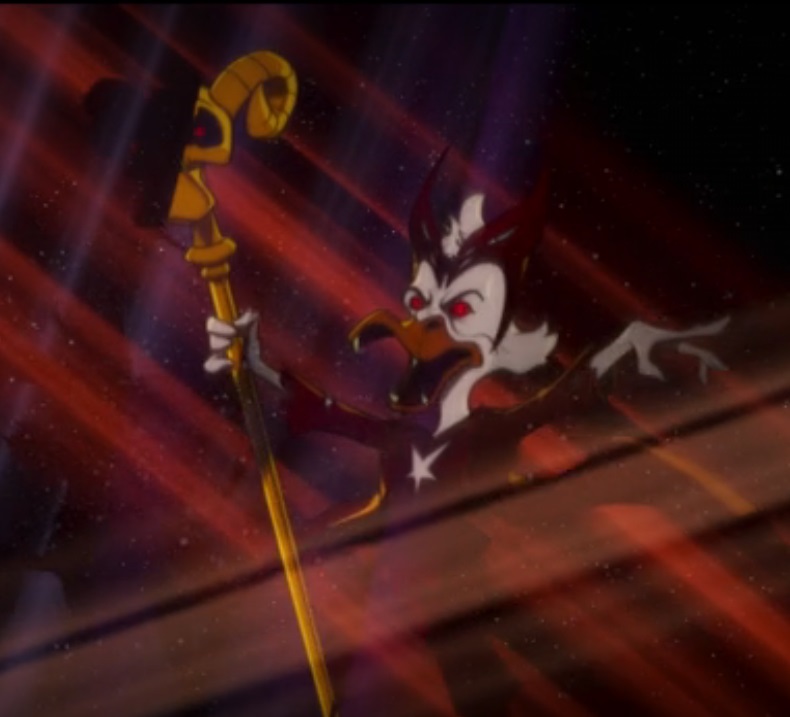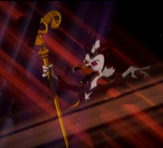 Yep, that’s an evil-looking, red-eyed duck with Scarlet Witch’s headdress alright!