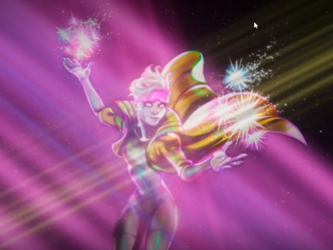 Lastly, there’s a character with large horns (or a horned helmet) and golden armor, but who’s too blurry to make out otherwise, before the rest turns into a full cosmic swirl.