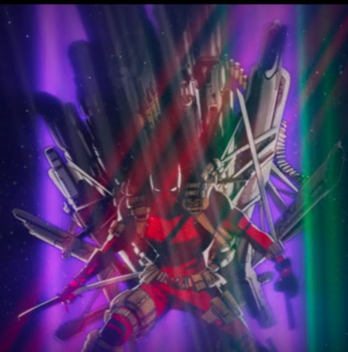 Things get so blurry at this point, it’s nearly impossible to get many details, but you can see a character with Loki’s horns, who is also holding a pistol up and wearing a hat that seems to be either cowboy or early 1900’s-gangster style.