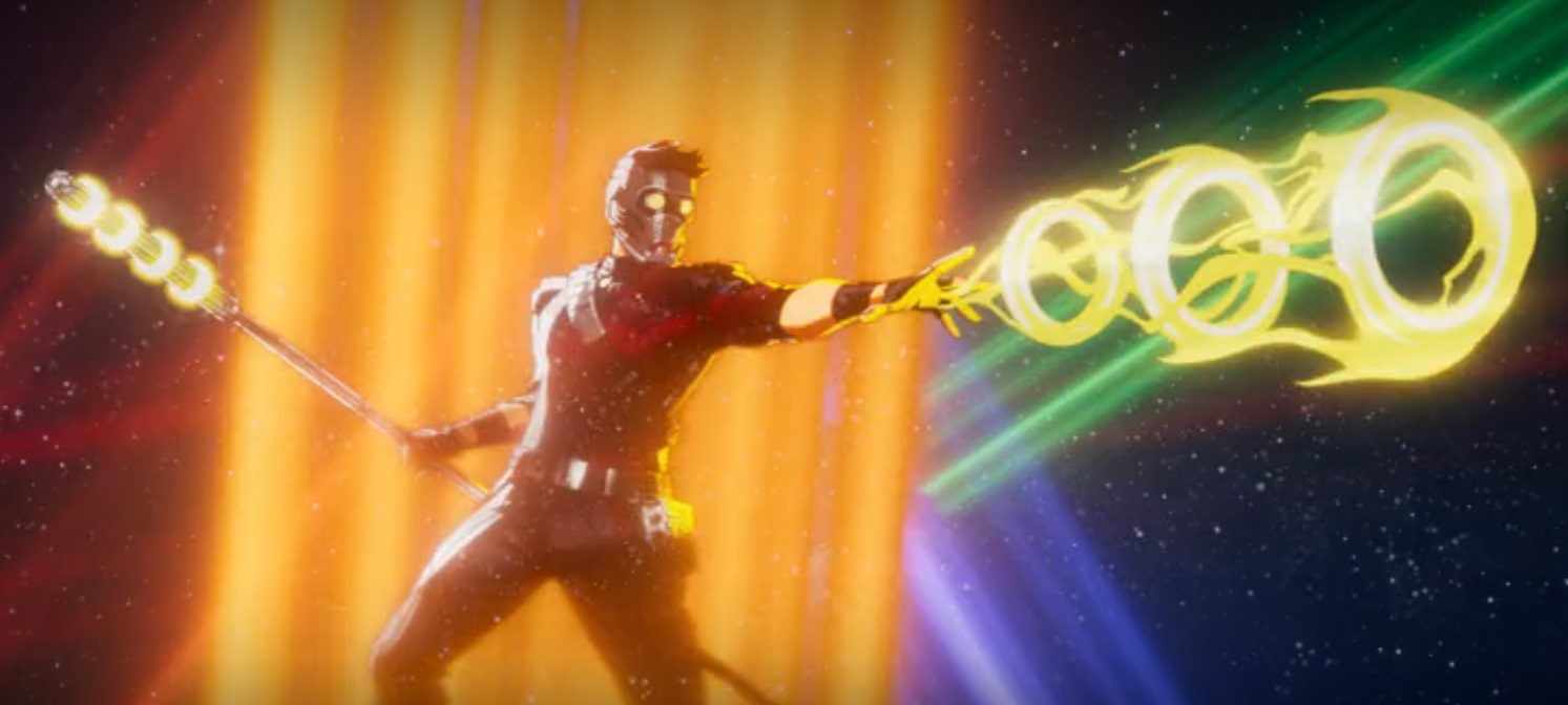 Based on the costume details, along with the presence of both the Ten Rings and the staff, that’s Shang-Chi, who’s not only mastered Kung Fu and the Ten Rings, but also become Star-Lord along the way. Though in the vastness of the multiverse, there is the small chance it’s a much more physically proficient Peter Quill instead.