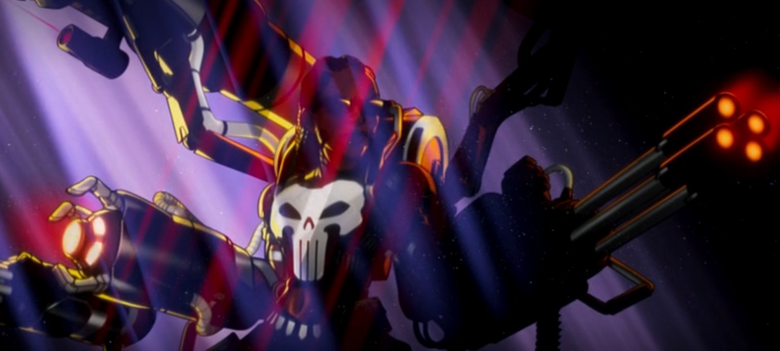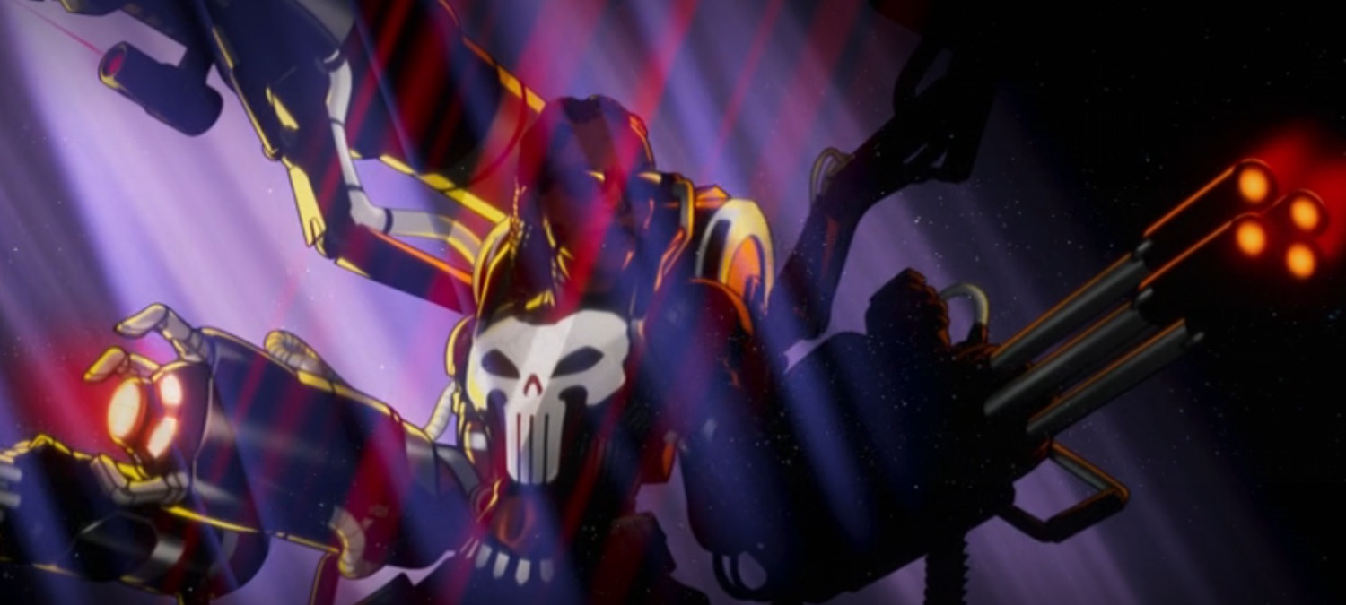 Next we have Riri Williams wearing the Punisher’s logo on her chest, but also sporting massive armor attachments and weaponry. This evokes the comic book storyline where Frank Castle wore the War Machine armor, though here it seems Riri has decided it’s time to start punishing.