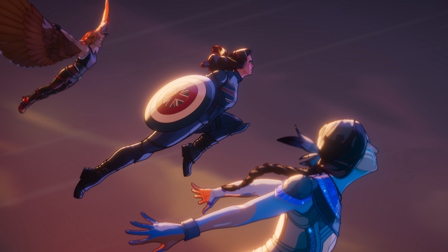 Of course, those final moments aren’t the only time we get glimpses at some wild and wacky variants in the What If…? finale. There’s also the sequence where the Eminence (Jason Isaacs) attempts to kill Captain Carter (Hayley Atwell), Byrdie the Duck (Natasha Lyonne), Storm (Alison Sealy-Smith) and Kahhori (Devery Jacobs), vowing to wipe every variant of them from existence as well - which we see begin to occur, as different variants of the characters are pulled away from them. In this sequence we see the following.