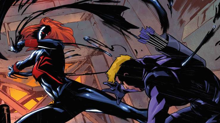 Marvel has shared a first look at the upcoming "Black Widow & Hawkeye #2," featuring Widow and her new symbiote companion getting into it with the world’s greatest archer.