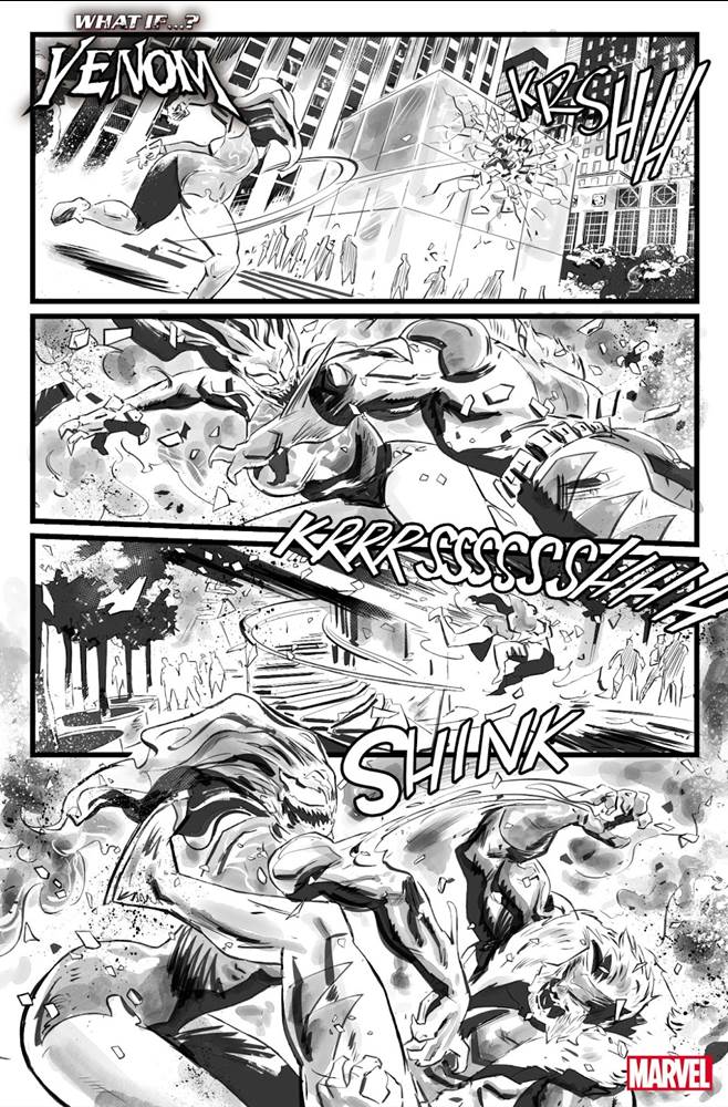 - Writer Jeremy Holt: “Having the opportunity to play within the Venom sandbox is cool. Having the opportunity to bond five iconic heroes to the alien parasite is cooler. In doing so within the What If…? concept, I’ve had an absolute blast crafting a linear revisionist history that’s provided me the latitude to introduce distinct versions of the anti-hero that we’ve all come to love."