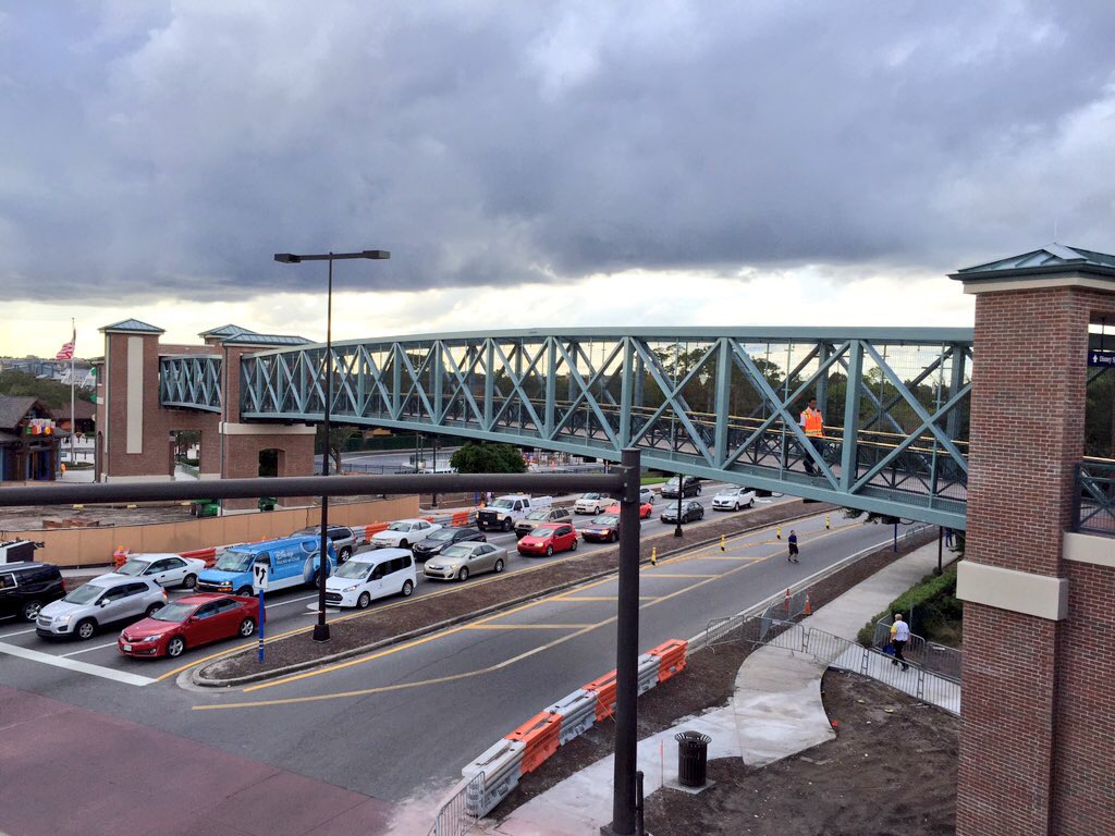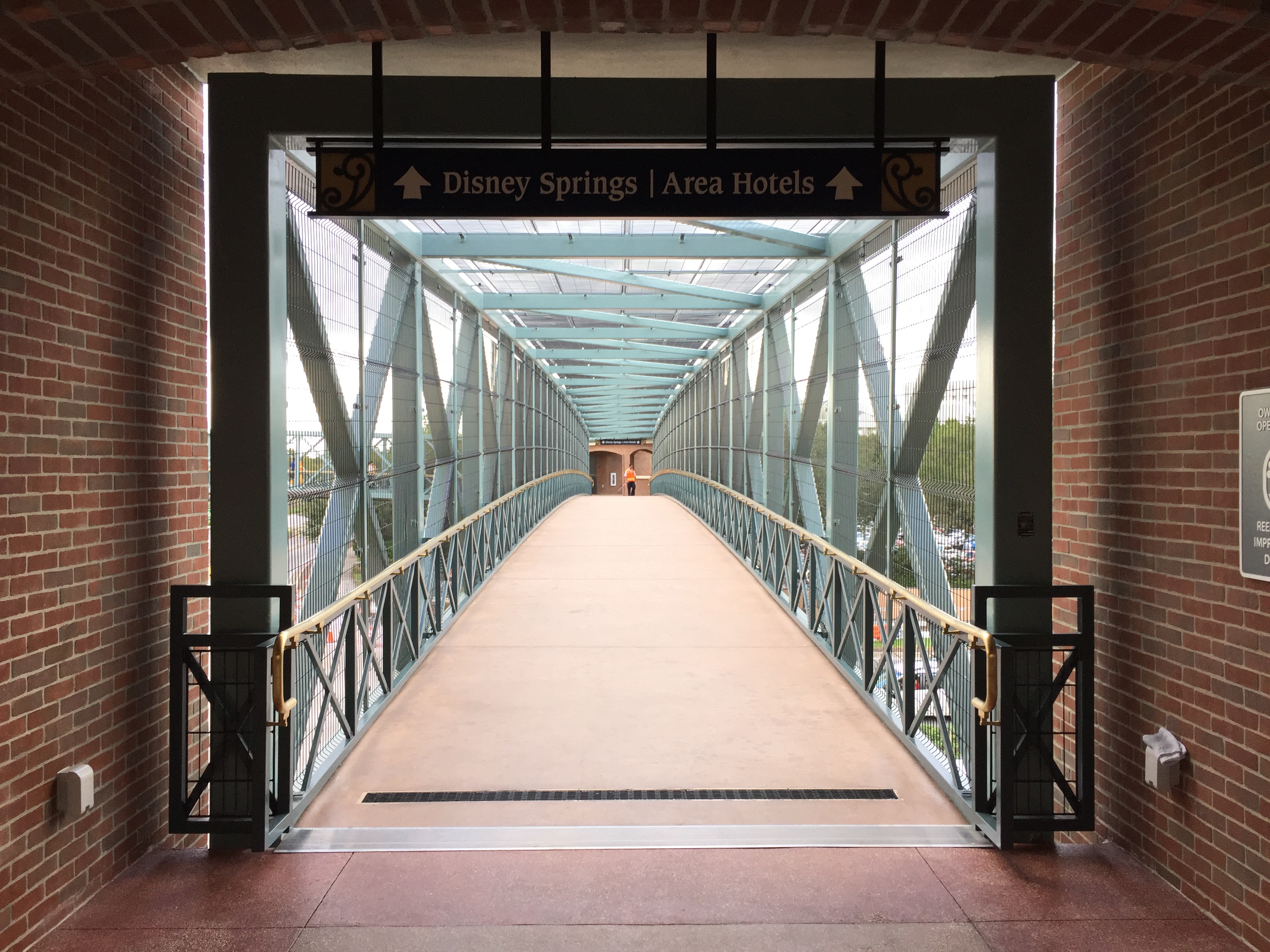 Now that the busy holiday season is just a few weeks away, one of the largest Disney Springs expansion projects has opened: the pedestrian bridge over Hotel Plaza Blvd and Buena Vista Drive. This project completes the bridges that connect Disney Springs to high traffic spots and will help with the car and foot back up in the area.