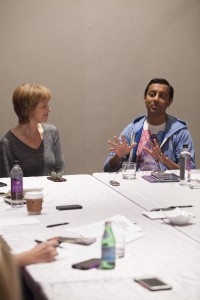 Regarding the bland, barren apartment that Sanjay and his father live in, "That was a very deliberate choice. I think the art direction was beige on beige," Nicole jokes. "The idea is a classic, kind of basic immigrant's space. They don't have a lot of stuff." Sanjay continues, "This is an immigrant that left all of the ethno-stuff back in the home country, and they got nothing here in some part of Southern California... And the artists that we explained it to, they got it right away. Especially the immigrants. They were like 'Oh, we had an apartment like that.'"
