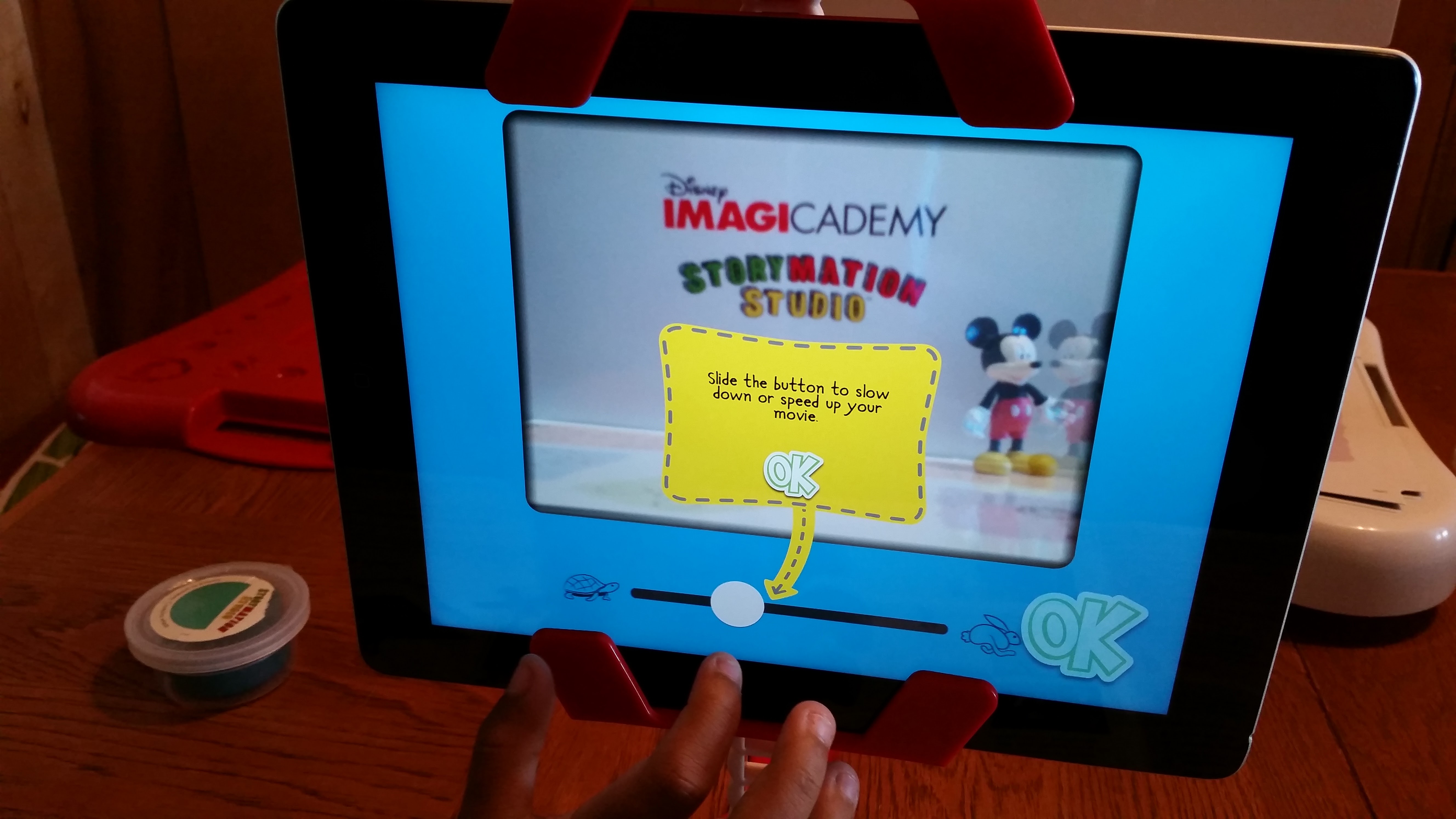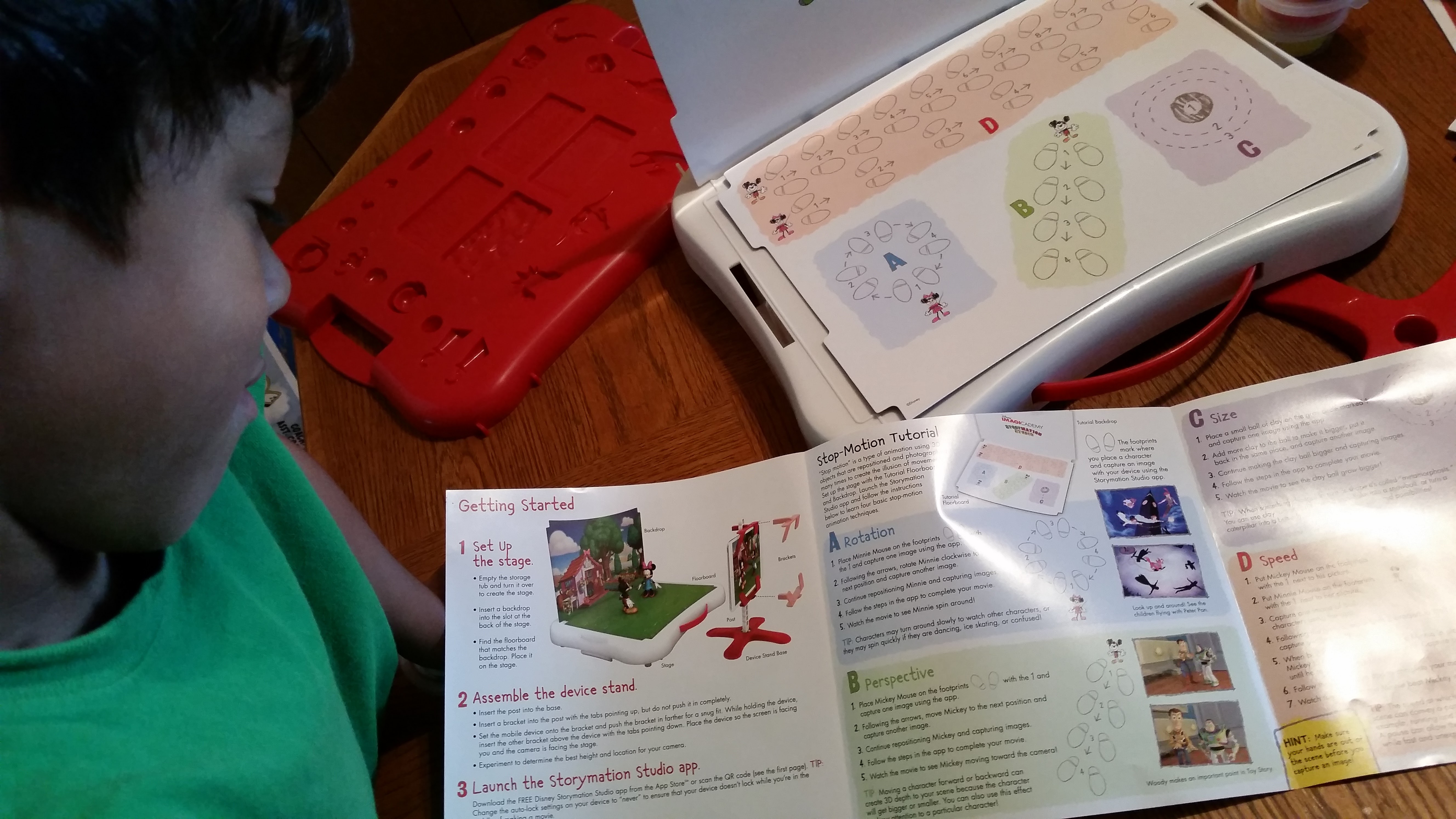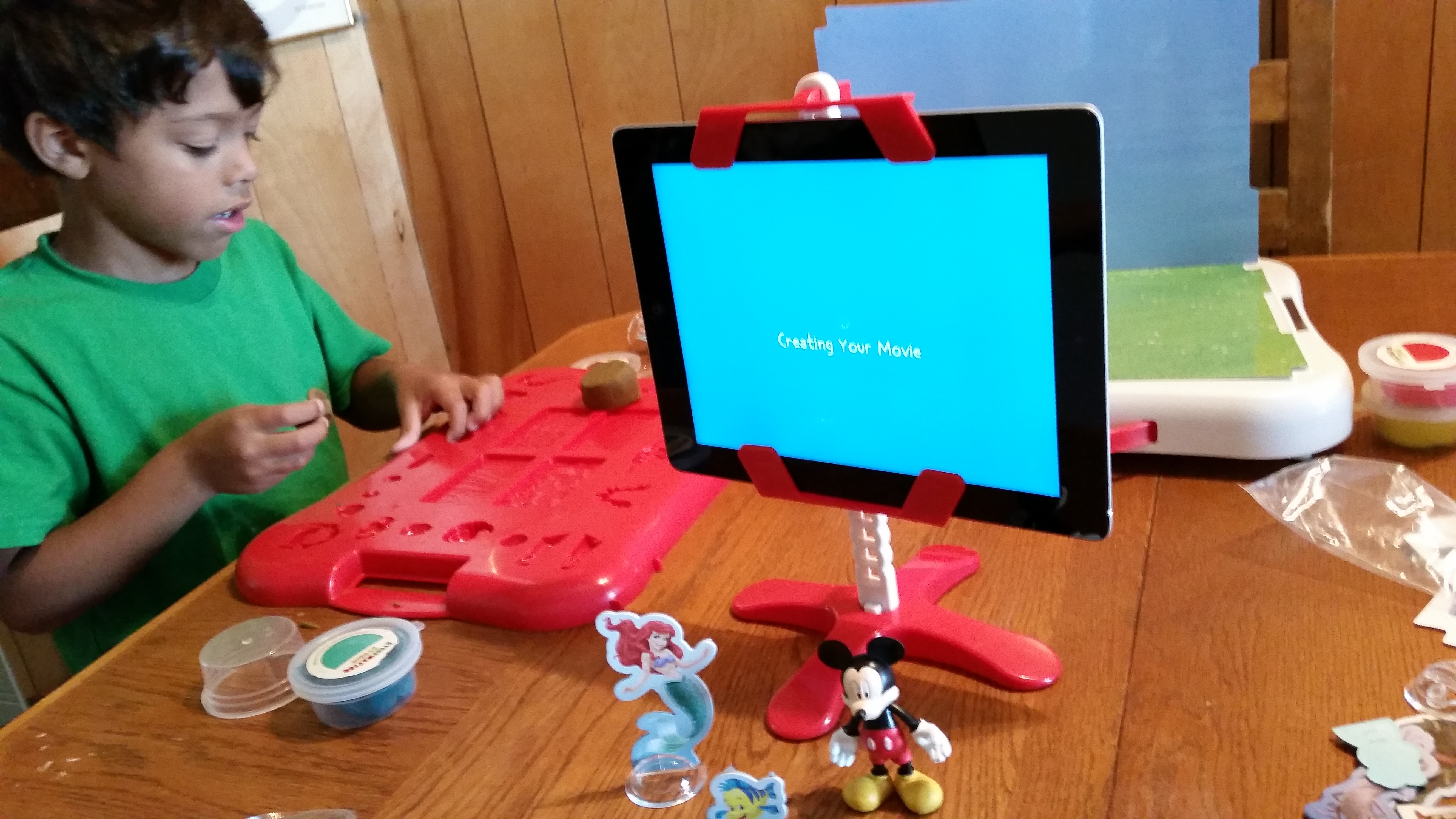 Shortly after downloading the free Storymation Studio app from the Apple Store, we used the tutorial backdrop to create a short film featuring Mickey and Minnie. Within the app, we were able to add special effects, musical score and a title. While we created this short together, a short time later my six-year-old was happily creating short films all on his own while I went off to do other things (until he was ready to screen his creation, of course). One lesson we quickly learned — and would've known if I'd thoroughly read the included instructions — be sure to disable the iPad's auto-lock feature. It kept longer creations from saving properly until I discovered my mistake. Lesson learned and once I made that change we had no further issues with saving the movies. And I was thrilled to find the tablet stand was quite sturdy; my young, enthusiastic filmmaker didn't knock over the iPad once during his session. I stayed close initially out of concern for the iPad but those concerns proved unwarranted.