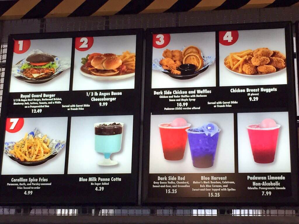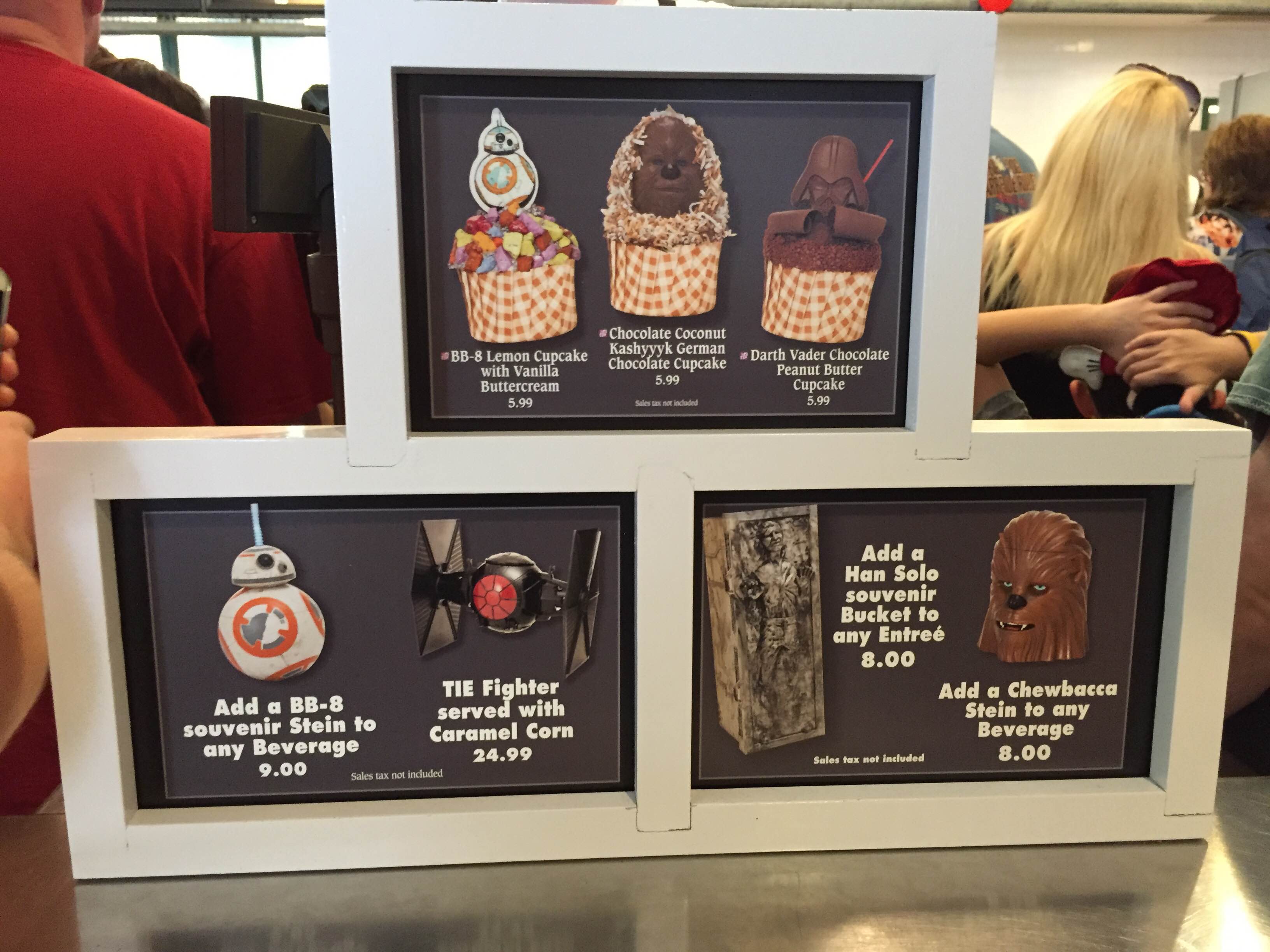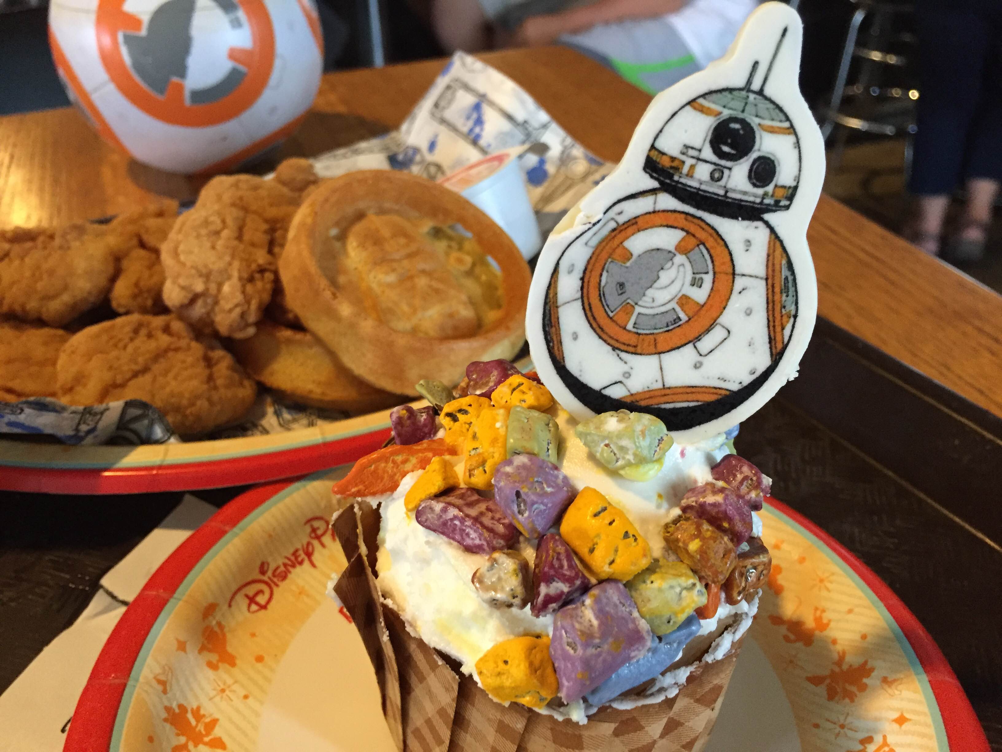 Finally, we have Galactic Food being offered at Backlot Express including Star Wars cupcakes, Dark Side Chicken and Waffles, and Blue Milk Panna Cotta.