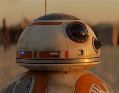 This review promises to be spoiler-free, which isn’t hard to do because there’s so much that’s done right in this film that I could sing its praises all day without touching on plot details. When George Lucas made the original trilogy, cameras weren’t as portable as they are now. There are some amazing shots in this film, camera maneuvers that have yet to be seen in the Star Wars universe. In large part, these shots would have been too complicated to be possible had J.J. Abrams not insisted on doing so many visual effects practically in lens. The new (and incredibly likeable) droid BB-8 is a perfect example of this. Much of the time it’s a real robot, truly there on set and when the camera gets down to his point of view to follow him, it’s like nothing you’ve seen before. Remember when the camera remained still as R2-D2 and C-3PO waddled deep into the dessert? Shots like these are much improved this time around.