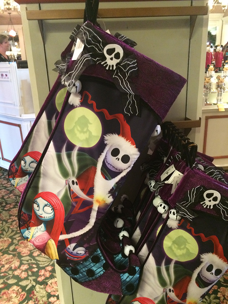 There were a variety of stockings available for purchase (and personalization!) as well. It looked like Disney put a lot of detail into many of the designs. The most plain were the Frozen and Toy Story ones. My favorite was definitely the Nightmare before Christmas stocking, with its skull bow and Jack-faced jingle bells.