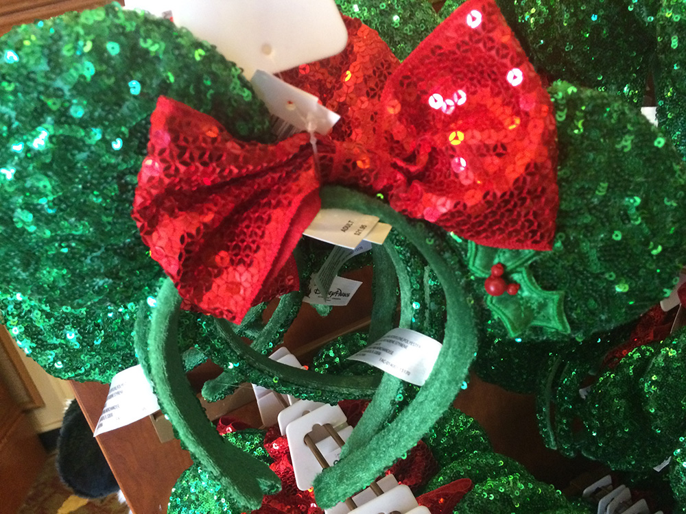 To keep the cheer lasting all day, why not adorn yourself in one of these festive hats or headbands? The light-up ear headband decorated with holiday lights looked like popular. The Santa cap with attached gloves (available in Mickey and Minnie styles) would be great for cooler evenings.