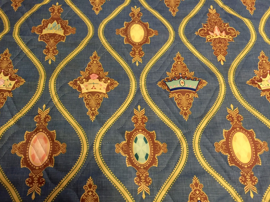 Once in the door, it is almost a scavenger hunt to find references to different films ranging from Snow White all the way up to Tangled. But what stands out first is the beautiful bed with nicely detailed headboard and bed runner paying tribute to the Princess's crowns.