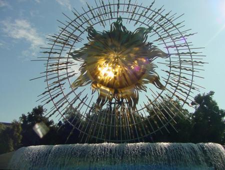 A: The sun icon. The sun icon is the ultimate final statement for our entire entrance complex here. The whole idea is that we’re walking through a picture postcard starting with the California letters, going through the images of California with the mural and kind of looking through the Golden Gate Bridge. I love the idea of the bridge because of what it represents. It’s like the ultimate icon for California as well as having the Monorail go through - the ultimate icon for Disney and then at the end of that long line is our plaza here with our wave fountain and the sun icon.