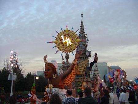 SD: Huge huge success from top down to guests. First we showed it to Michael Eisner, Paul Presler and Cynthia [Harriss], they were just ecstatic. They just loved it. I usually just walk out and watch audiences. Even like with "Believe" I just walk out and I watch the audience and how they react, and people clap along, they get into it, they get caught up in its energy. Just to hear what they say like "whoa what’s that?" or "that was cool." To really get at some ages that other parades don’t hit well, like teenagers. Teenagers get caught up in certain pieces. They love the extreme sports thing.