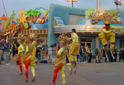 Even the lighting and even the sound for this is really sophisticated and there were big challenges to overcome and the hardest part is it’s a brand new park. So you don’t have a sound system that’s been working for 20 years - it’s all new and the lighting is all new. So you go through those growing pains. You kind of had to take big breaths and you sit there and it took a lot of time to get everything up and working. It’s always nice to have this month of previews just to change and say, "what if we did do this, what if we played with this number." We moved dancers around. We moved costumes around. We got rid of all the spandex in the parade. Edwin Pinski out of Las Vegas did the costumes and I loved the original sketch but as we got into it, it actually never kind of fulfilled what I wanted it to. People spent more time looking at the spandex in yellow than they did watching the opening dancers. Then the opening dancers got self conscious and we said, "you know, let’s change it. Let’s just change the look. Let’s change the idea."