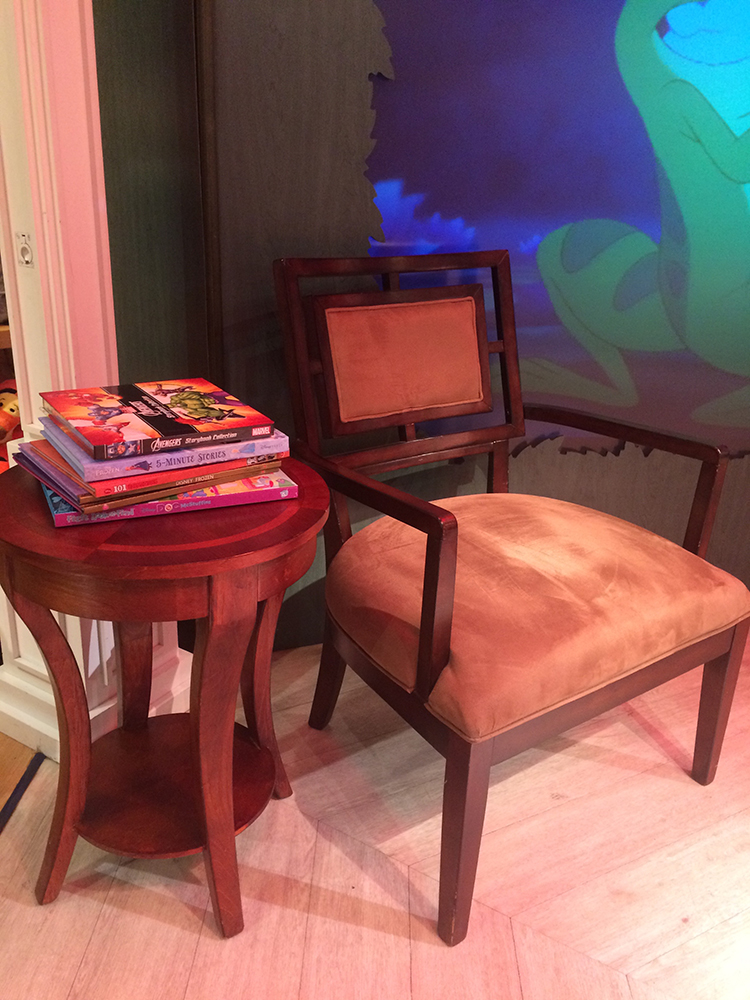 The special readers would sit in this chair in the main activity/stage area of the store. The pile of books served as a nice eye-catcher. I believe all of the stories read came from that pile.