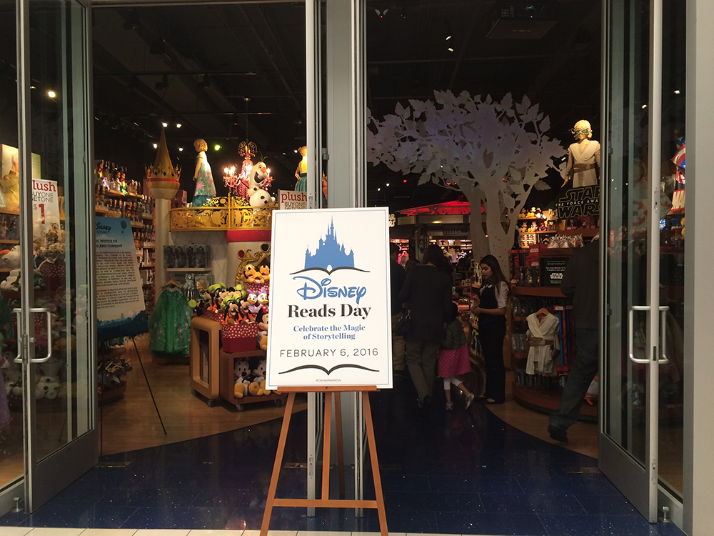 February 6th was the first annual Disney Reads Day, marking the company’s 50 millionth book donation. From the morning to afternoon, Disney Stores ran events that promoted reading and a love of books. Stores all across the United States participated in the event but two locations, California’s Glendale Galleria (home of the first Disney Store) and New York’s Times Square, hosted some very special guests. Let’s take a look at what took place over at the Glendale Galleria: