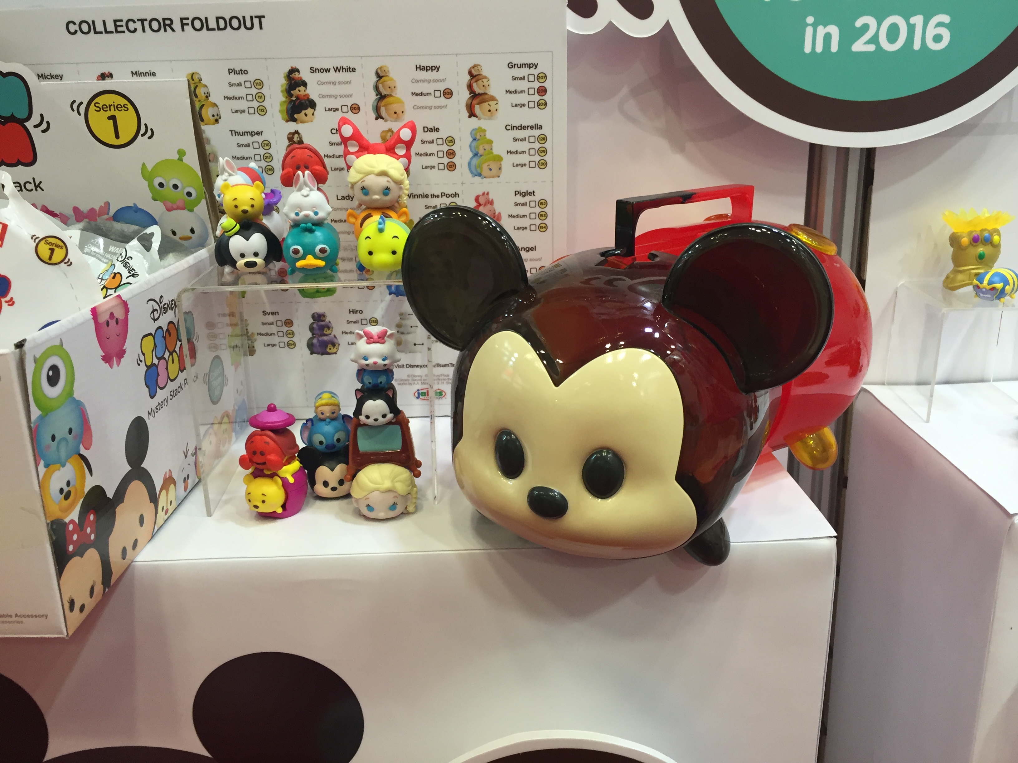 I did find a few plush Tsum Tsums at the fair from NGC Novelty, who asked that I not take pictures. The big difference between a standard plush Tsum Tsum and the licensed ones from NGC is that these light up and make noise! Mickey and his friends are all represented, as are characters from Frozen and favorite characters like Stitch and Marie. They will be available in multiple sizes, with the smallest being in between a mini and a small from Disney Store and the largest rivaling Disney Store's medium size. Their cheeks light up and the sounds they make are similar to the noises heard in the intro of the Tsum Tsum game.