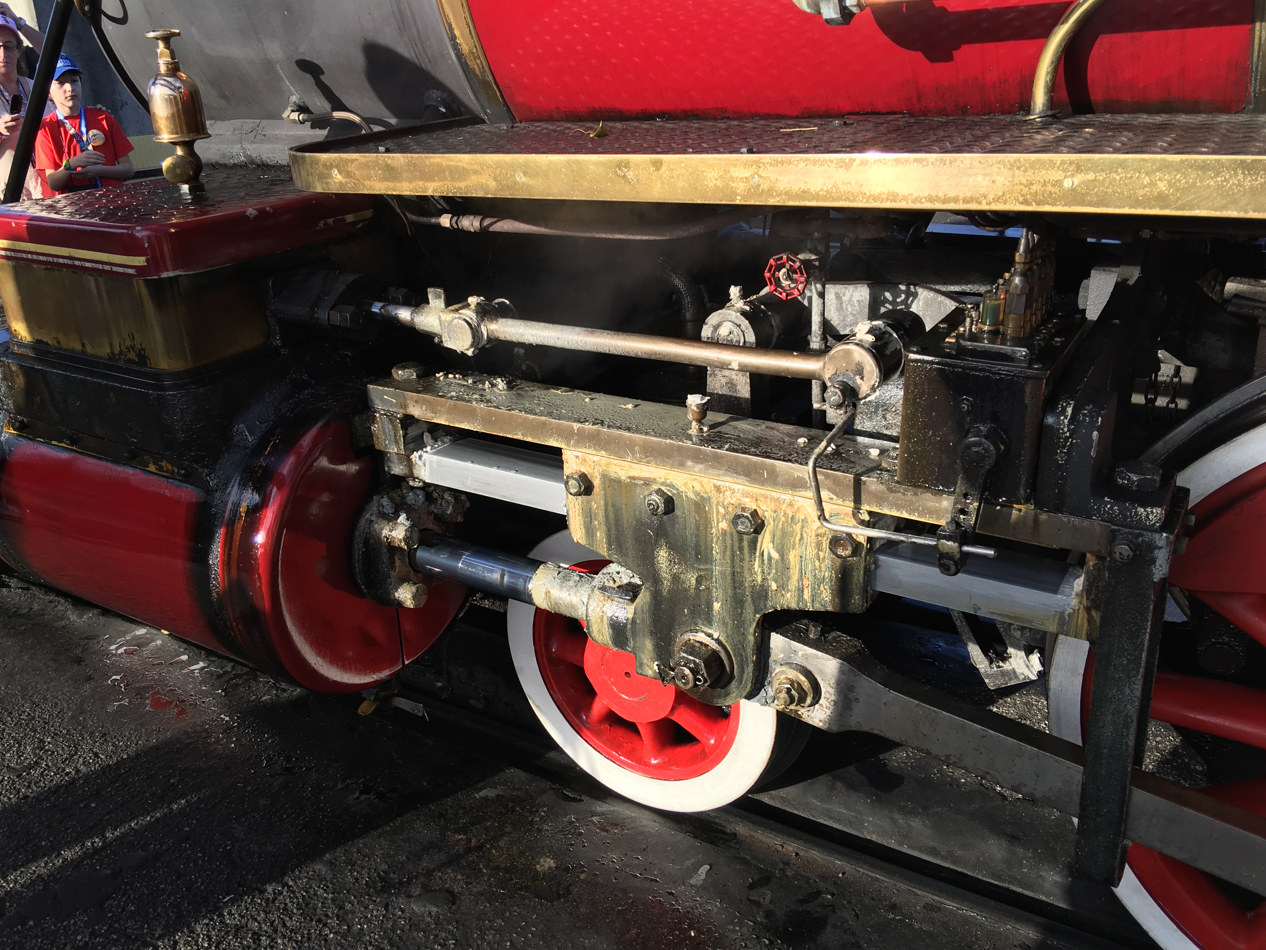 We then were giving a "how it works" tour of the outside of the Walter E. Disney engine, pointing out the gears and pistons and how they make the train move.