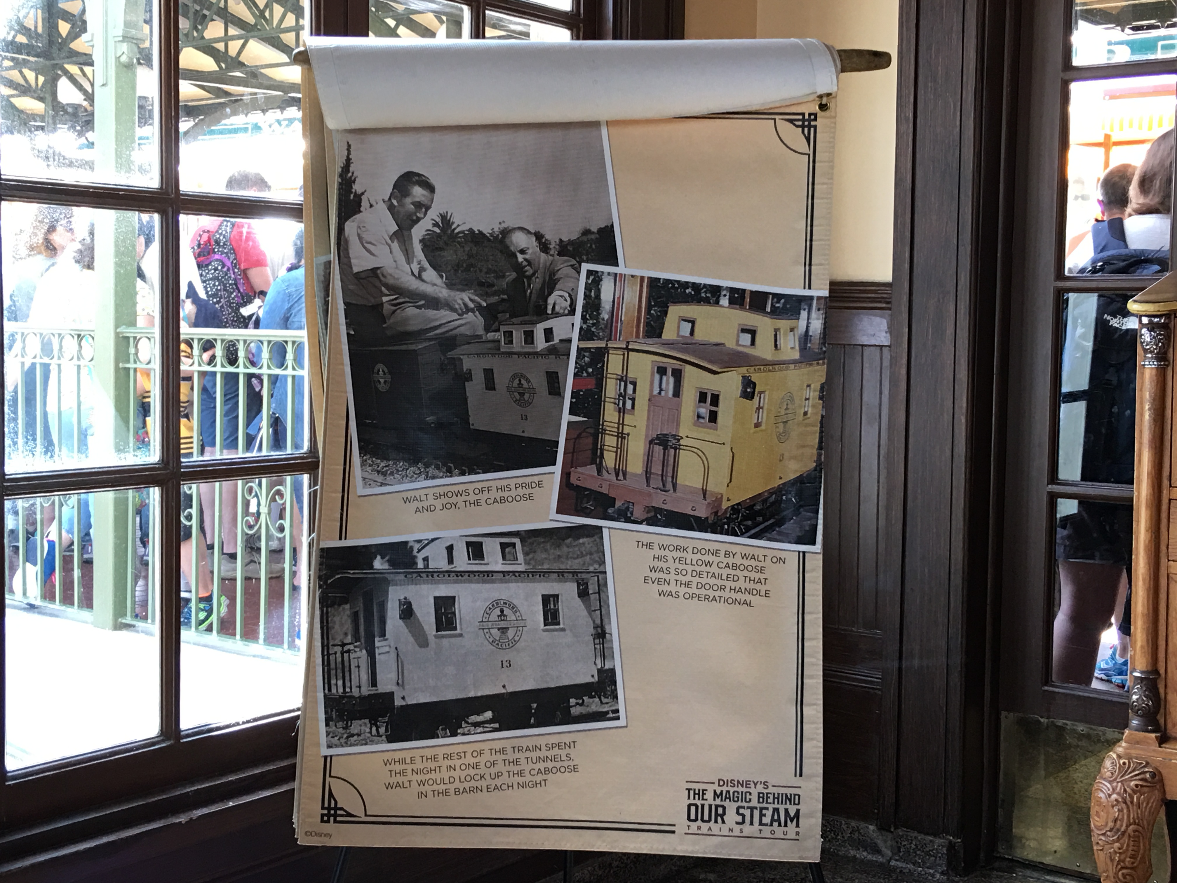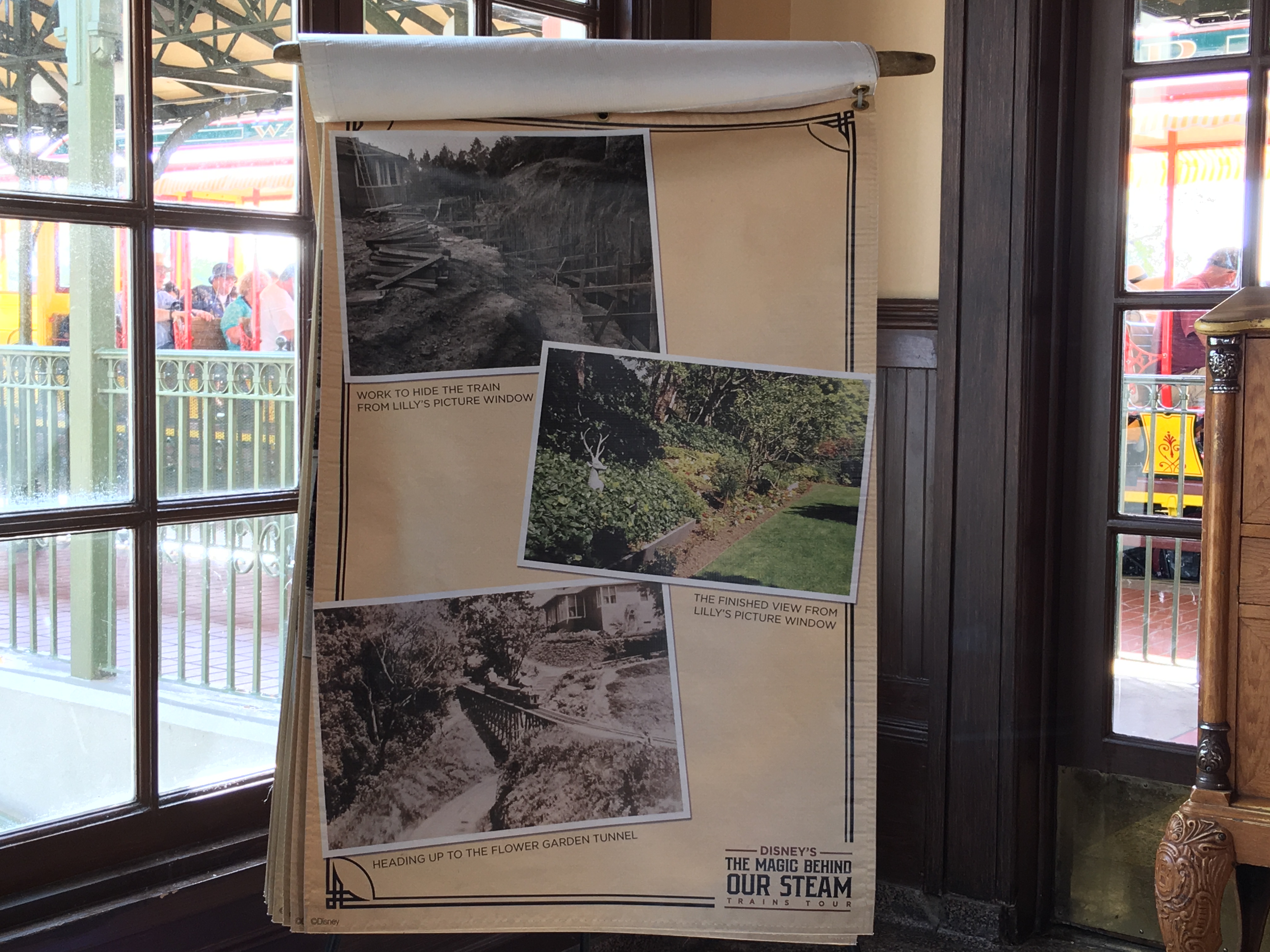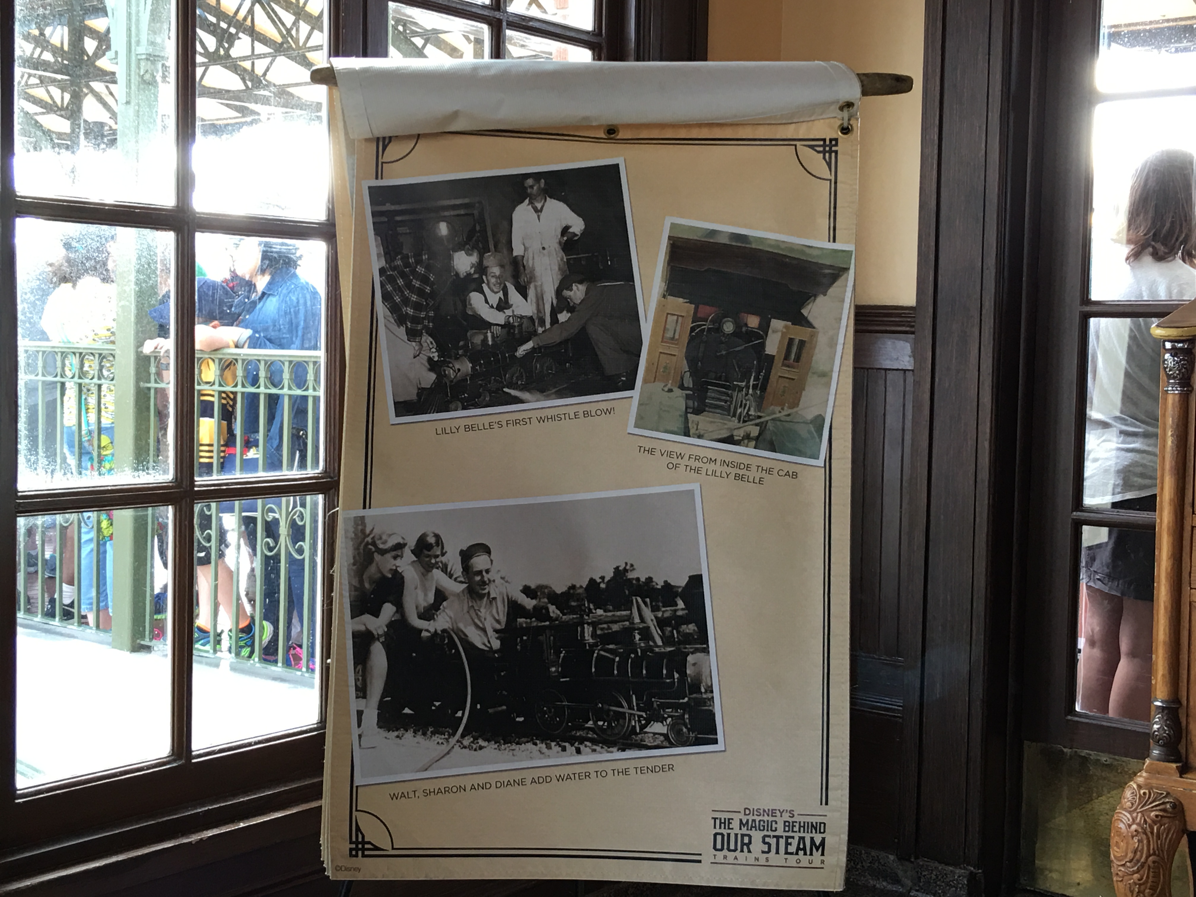 At the Main Street station, we were given a brief water and bathroom break before meeting on the lower level to learn the history of each of the engines — including the Lilly Belle which has been gone for four years as part of its year-long refurbishment. Upstairs we gather around Joe to hear the true history of Walt and his love of trains as told by pictures. Most are stories any die hard Disney fan will know but for the average guest it gives a great history including how Walt got his train and Lilly got her flower bed at their first real house together.