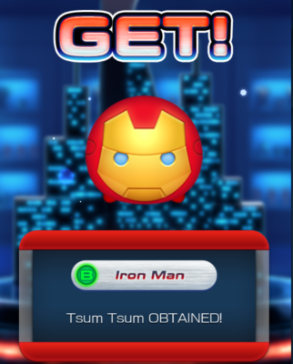The music in the game has switched from the cute Japanese DDR music to epic, heroic anthems. Your starter Tsum Tsum is Iron Man. In a direct translation form the Disney game, opening a Marvel capsule proclaims "GET!" with each Tsum Tsum you receive. GET!