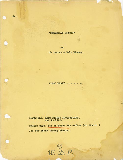 The sketch and script are believed to be the handiwork of Walt Disney and his friend and early partner Ub Iwerks and is dated May 19, 1928 with the actual production of the animated sound cartoon commencing on Monday, May 21st.