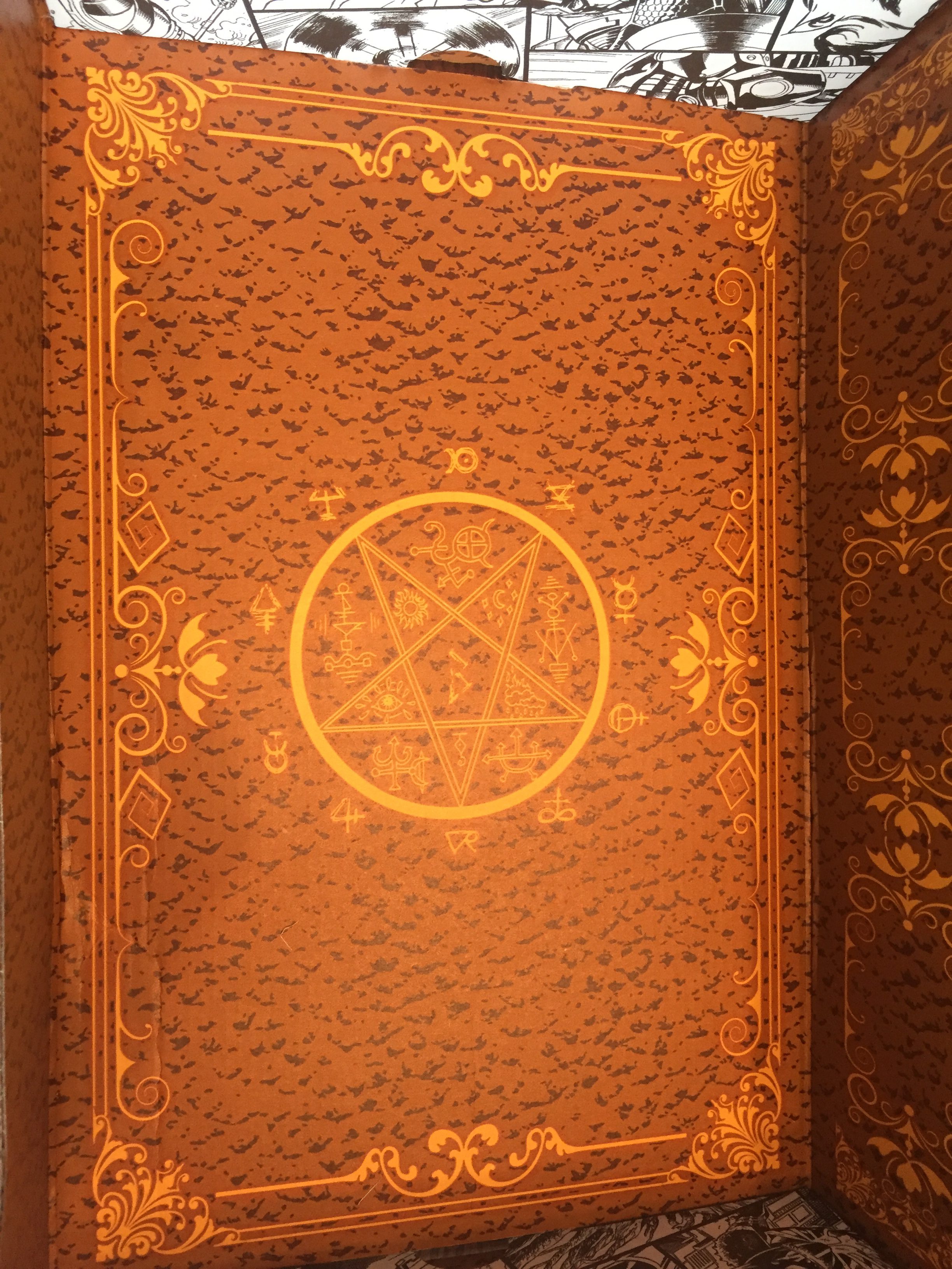 How do I know what everything in the box is? I employ the powers of Google and black magic... and Loot Crate has included a card with a description of all of the items. The bottom of the box features the back cover of The Book of the Darkhold and fans can use a box cutter to carefully cut it out and display it if they so choose.