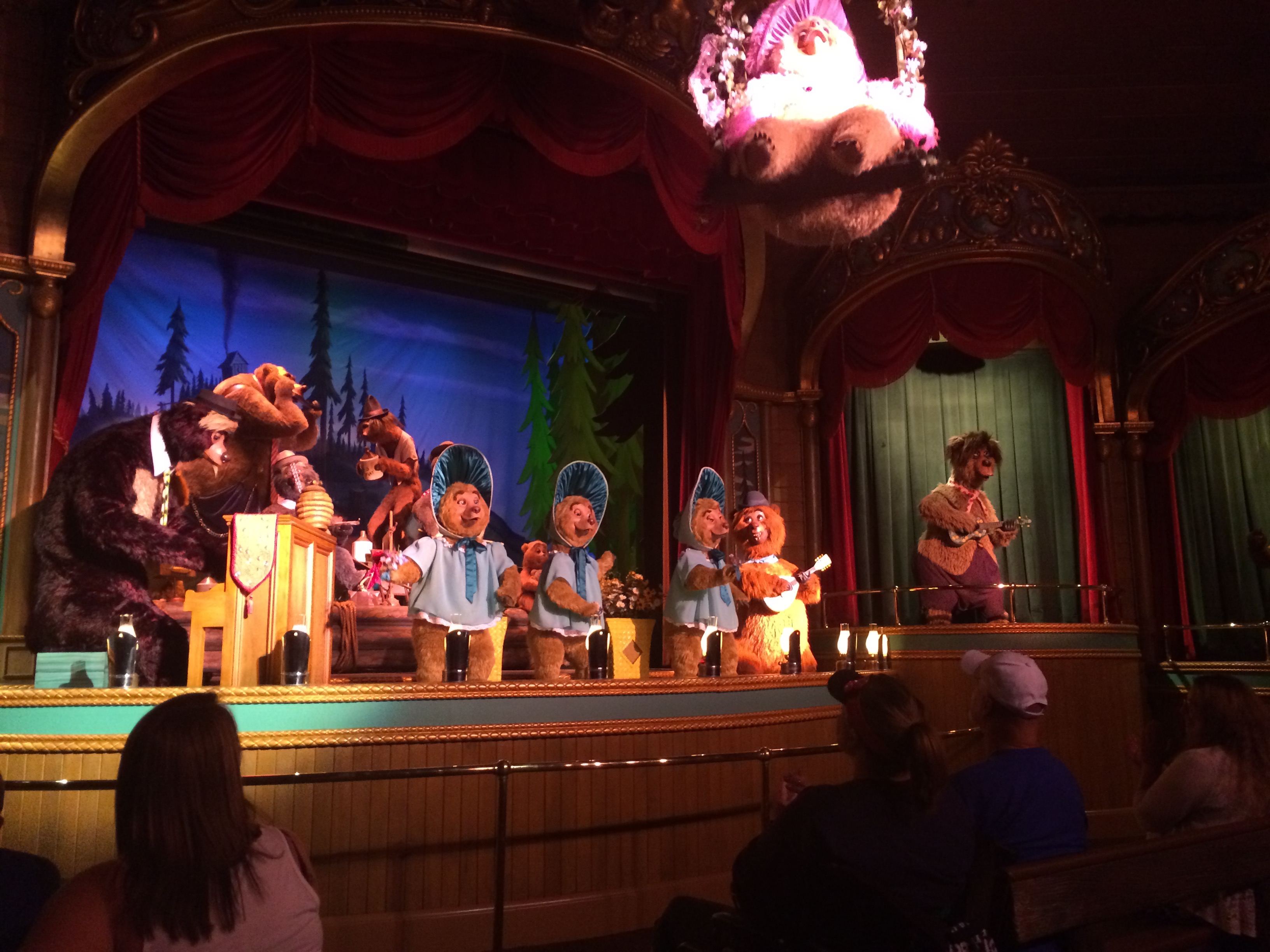 When our time in World Showcase had come to a close, we decided to move over to the Magic Kingdom to close out the night. Once we got there, the first attraction that we did brought back some memories as we saw the Country Bear Jamboree. Vito had never seen it before (and he was not impressed), but I was sitting there clapping my hands and stomping to the beat because I always have a fantastic time with Big Al and company.