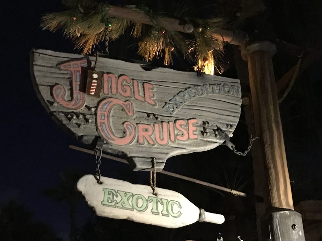 One of the highlights of Christmas in the Magic Kingdom is the change of the Jungle Cruise to the Jingle Cruise with its over-the-top holiday puns and props taking over the jungle.