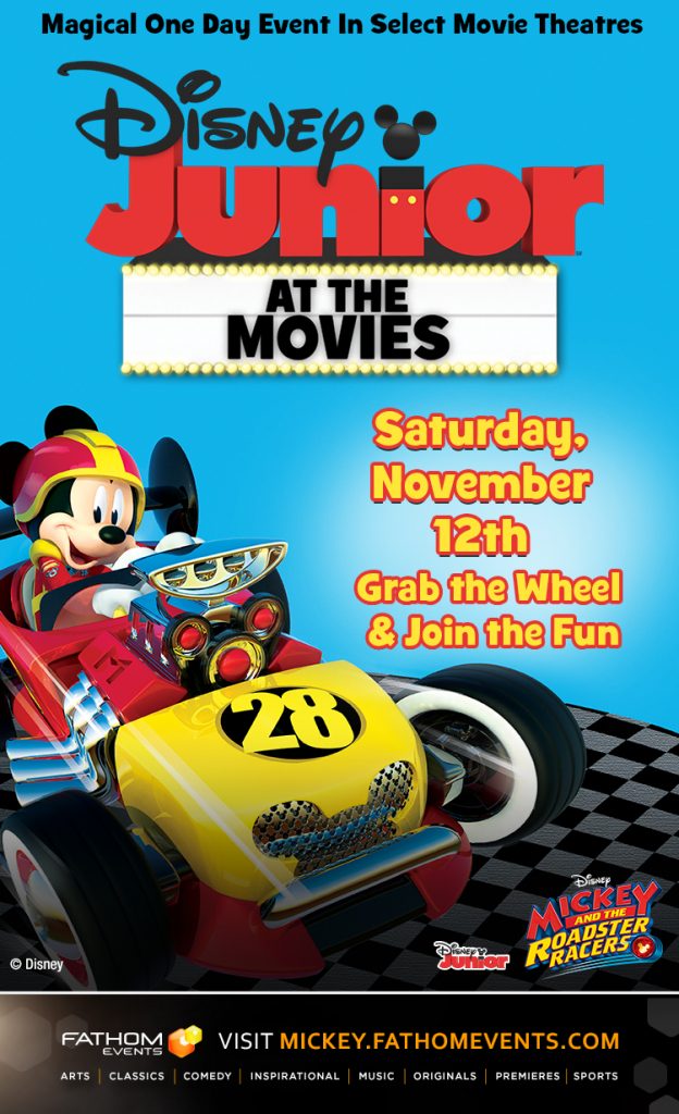 Mickey Mouse’s 88th birthday is on November 18th, but that didn’t stop Disney Junior from celebrating early on Saturday, November 12th. In partnership with Fathom Events, kids and families were invited to a morning at their local movie theater to celebrate the upcoming series, Mickey and the Roadster Racers in honor of the Mouse’s upcoming birthday.