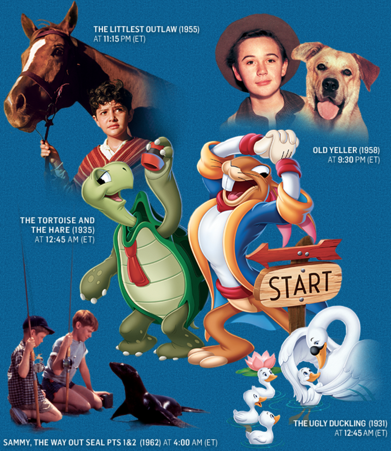 This animal edition of TCM's Treasures from the Disney Vault featured a few wonderful animal films, plus two memorable Silly Symphonies. It's one of the few versions of the programming lineup that has managed to stay on-theme from start-to-finish and this theme could easily be repeated several times over without re-airing a single film. However, my hope is that next December returns to a winter and Christmas theme with films like The Happiest Millionaire (featuring the song "It Won't Be Long Until Christmas"), Melody Time (featuring "Once Upon a Wintertime") and Swiss Family Robinson (it has a Christmas scene).