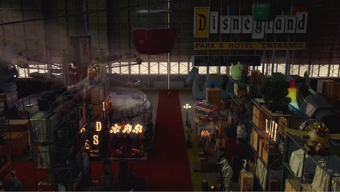 You will be happy to know that there is an actual warehouse that served as a model (and possibly a location) for this spot. It (and its twin!) is a few miles south of Disneyland in Tustin. The former Marine Corps Air Station there features two immense aircraft hangars, built entirely of wood in 1942 as part of California’s coastal defenses. Following the attack on Pearl Harbor, the United States believed that they needed to patrol the west coast with lighter-than-air craft. These hangars were built to house some of them.