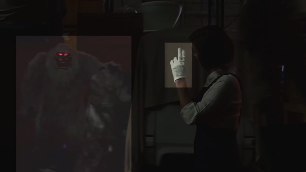 Just under halfway through the spot, the cast member arrives at her destination. A she glances down, a large and rare artifact can be seen behind her. This is the model Nautilus, once displayed as part of the 20,000 Leagues Under the Sea exhibit in Tomorrowland.
