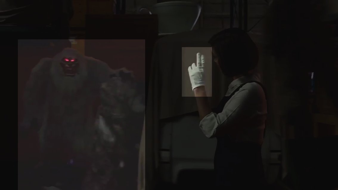 Note: The first image in each pair is a direct screen grab. The second image is the same shot, but highlighted to show the Easter eggs.