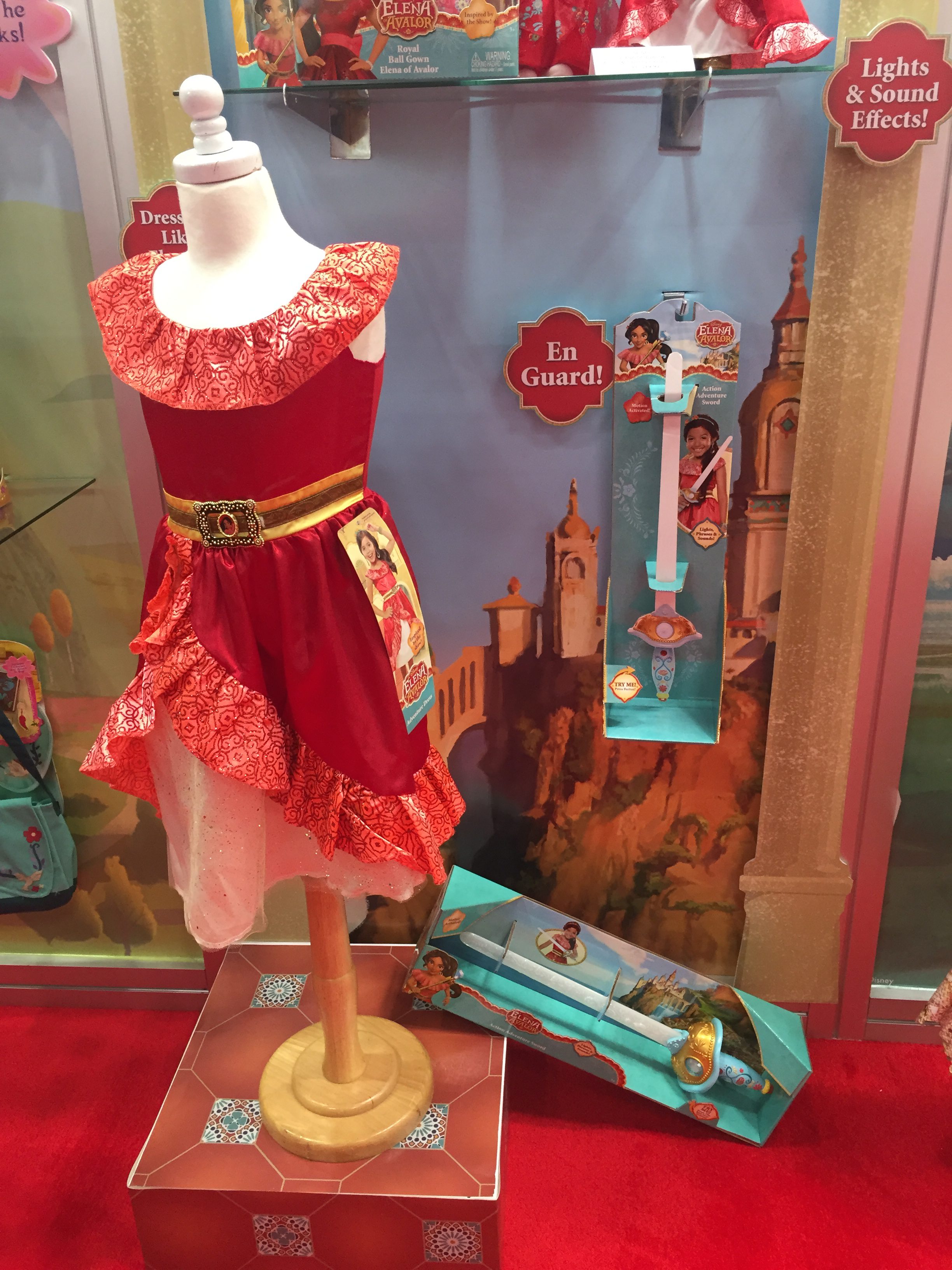 Kids can already dress up as Elena with two dresses from Jakks Pacific. Her Adventure Dress is pictured here, and a light-up Royal Ball Gown is also available along with accessory sets that include shoes and jewelry. Also pictured here is the forthcoming Elena of Avalor Action Adventure Sword. This battery operated toy features motion activated effects, with light-up elements and sounds that react to your playtime. It also includes phrases of dialogue from the hit Disney Channel series. Other products debuting next fall include a ponytail hair set and an Enchanted Jewelry Box.