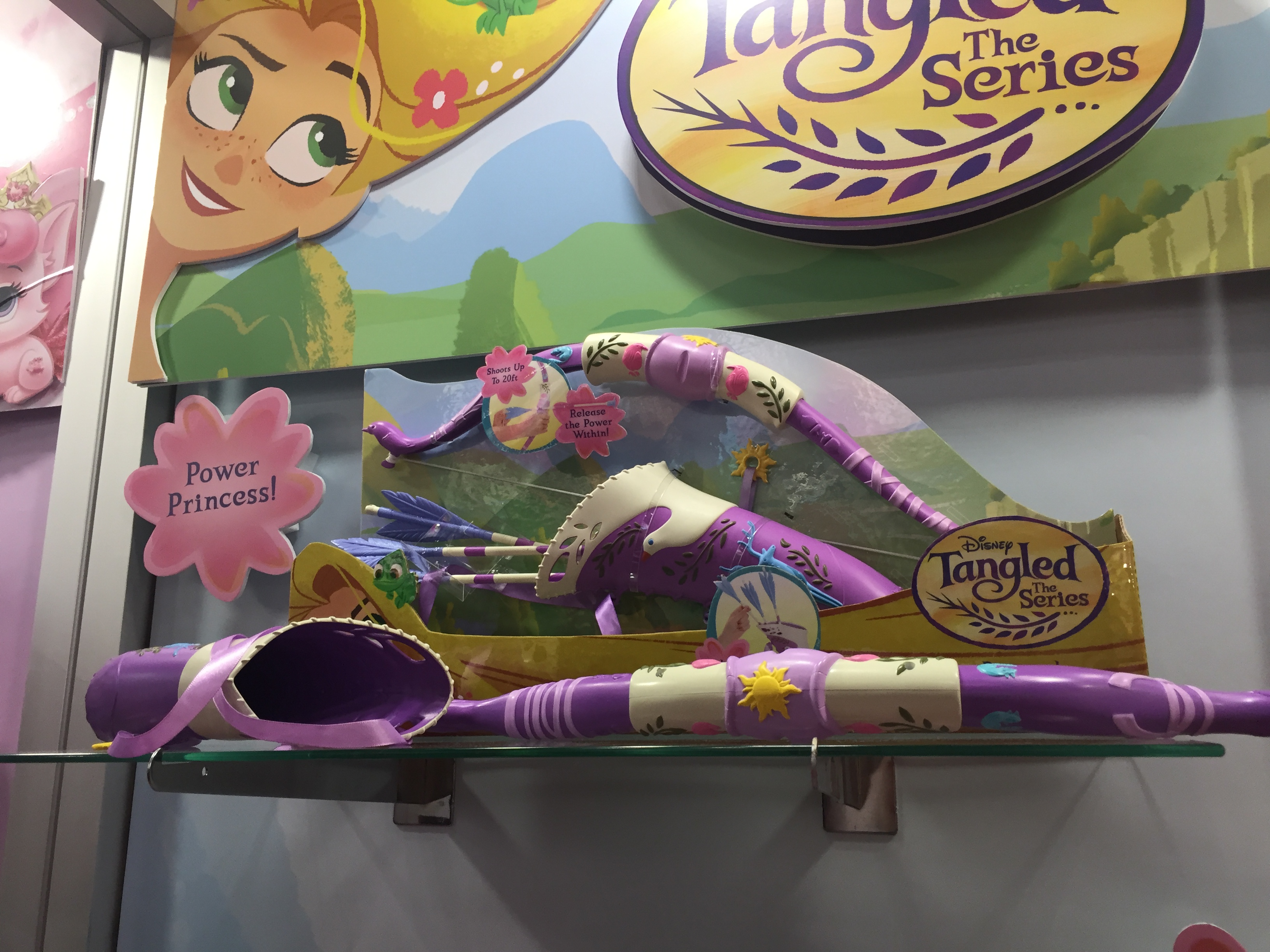 Tangled: The Series debuts next month on Disney Channel and I'm pretty excited about it. Jakks Pacific is really focusing on pretend play with this series and all of these products will be available this fall. This is Rapunzel's bow and arrow set, which comes with three arrows with suction cup ends. They all fit inside the included quiver and can be shot with the themed and detailed bow.