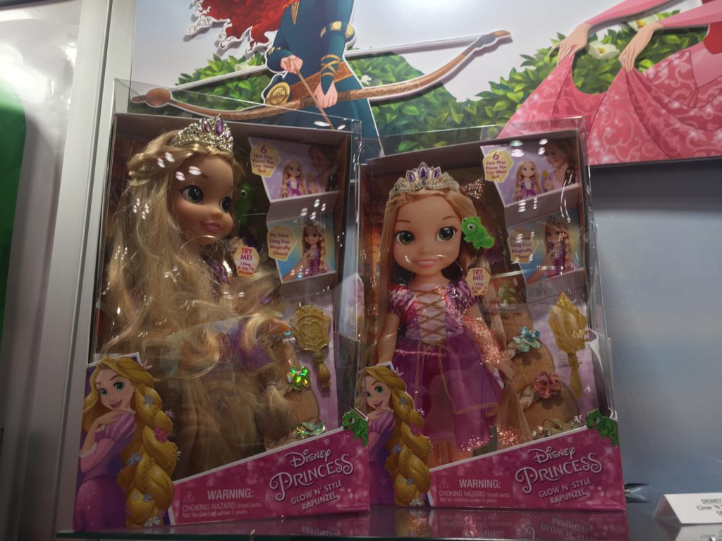 A new interactive Rapunzel doll will also join the collection this fall. Glow N' Style Rapunzel is a battery operated doll whose hair actually glows. She sings "I See the Light" and has 17 phrases. She also comes with a removable tiara, 5 hair clips, a brush and a Pascal hair clip.