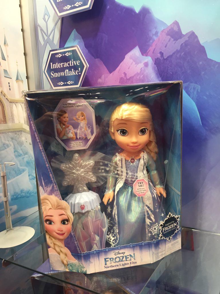 Frozen recently debuted the "Northern Lights" collection of books and the Lego short animated series. Keeping with the theme of that collection, Jakks Pacific has the new Northern Lights Elsa doll, with an interactive snowflake. A magic wand allows kids to interact with both pieces, and the snowflake can be used to project the Northern Lights on Elsa's dress. The doll itself sings "Let It Go," lights up, and says 40 phrases. Jakks Pacific also teased that they are working on some products to tie into Olaf's Frozen Adventure, a new TV special airing this winter.