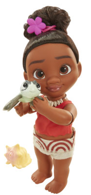 A new Moana baby doll will also be released just in time for the next holiday season. Giggling Baby Moana laughs when kids put her in water and comes with a seashell and turtle friend that she can hold. This battery operated toy is sure to make bath time lots of fun for young Moana fans.