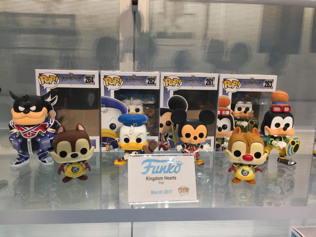 [gallery td_select_gallery_slide="slide" size="medium" ids="202242,202243"]But the big reveal at Toy Fair was the collection of Kingdom Hearts Pop Vinyls. Mickey, Donald, Goofy, Pete, Chip and Dale will all be available next month. And in addition to the Pop Vinyl figures, you can also collect the aforementioned plush set and a keychain collection.
