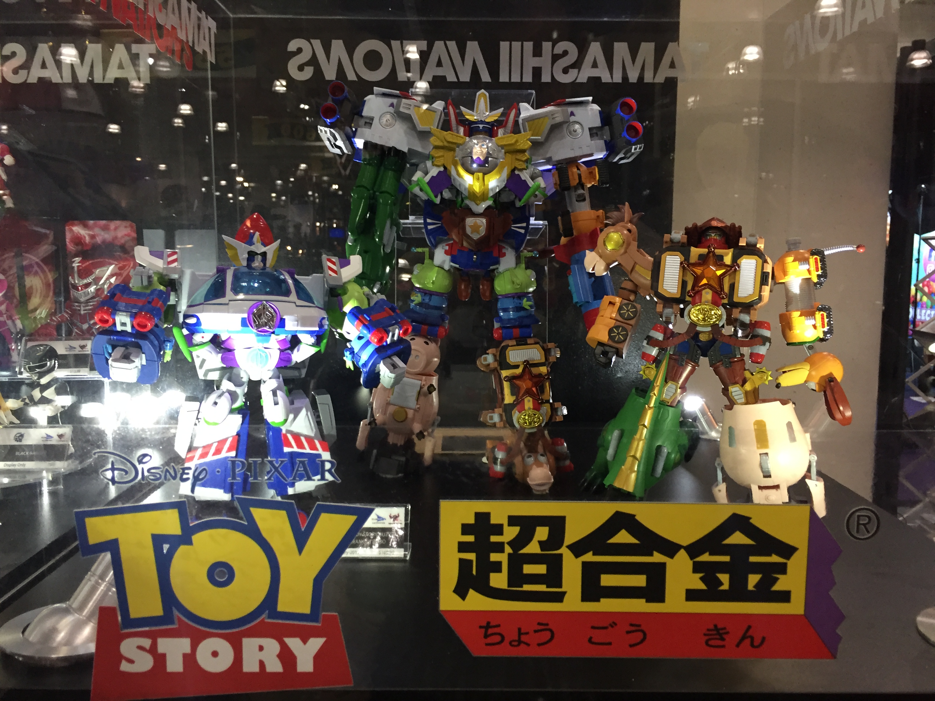 It's been over 22 years since Toy Story changed the animation game and Bandai Tamashii Nations is celebrating its legacy with a Toy Story inspired Chogokin robot figure. Similar in concept to the zords in Mighty Morphin' Power Rangers, this line of diecast metal robot toys debuted in Japan in 1974 and was an inspiration for the creators of Voltron. In December 2016, Bluefin distributed the Woody Robo Sheriff Star, a combination of Woody, Bullseye, Slinky, Rex and Hamm. The second part, Buzz the Space Ranger Robo, debuted this month and comes with Buzz Lightyear, his Star Command space ship, and two Three-Eyed Aliens. Each set can create their own Chogokin, and you can also merge them together to form the Toy Story Super Combination Gangreat King.