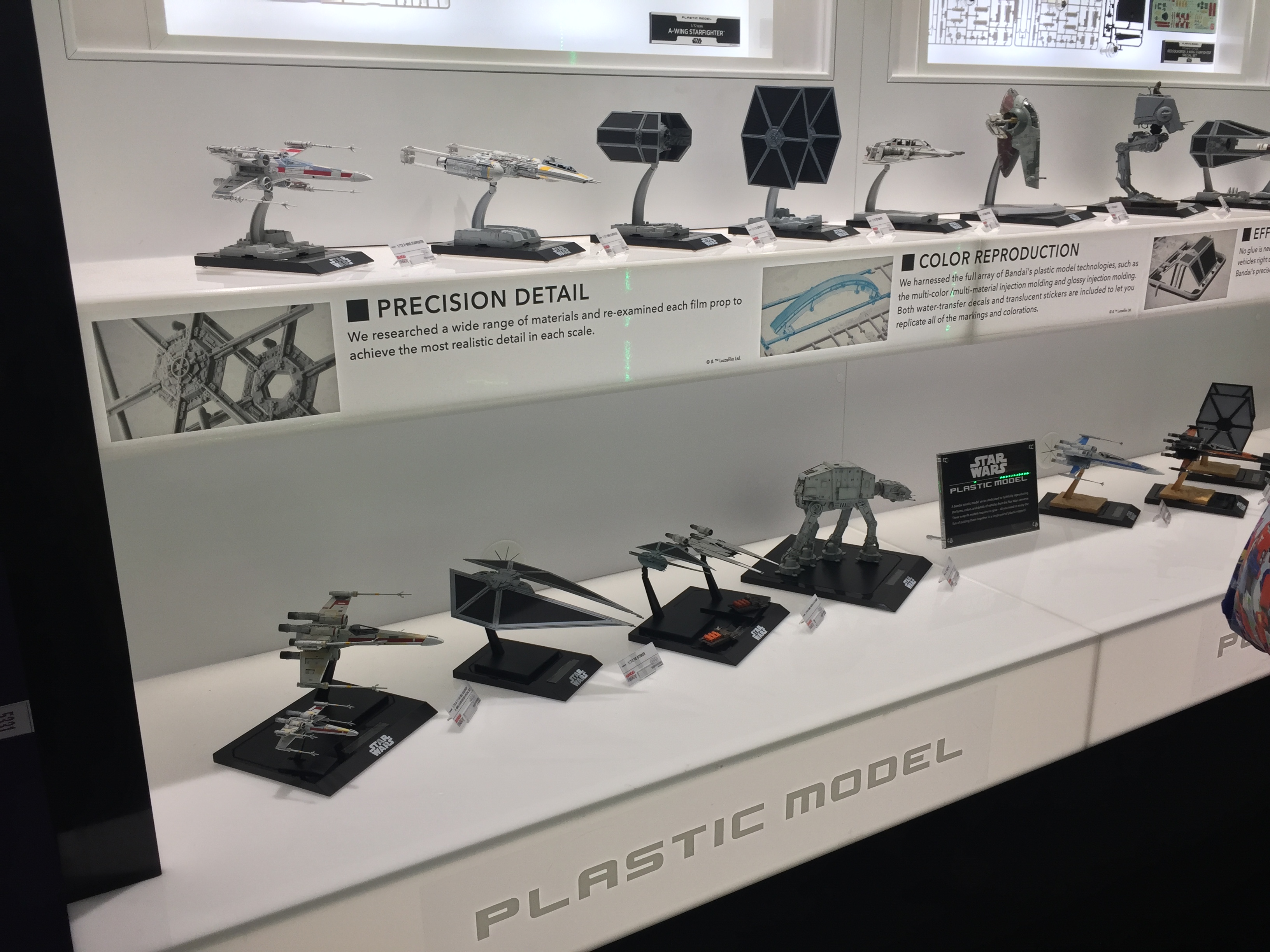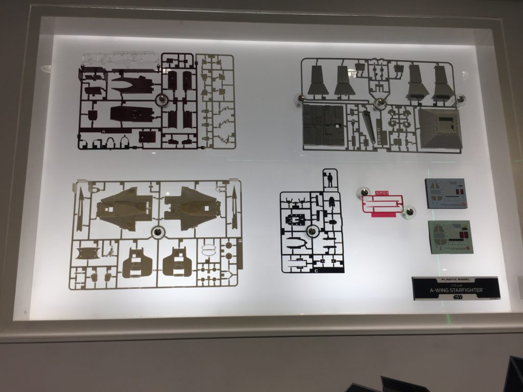 Bandai also makes intricate plastic model kits based on Star Wars ships and vehicles. I remember building several Star Wars models as a kid, but these are designed for adults with considerable model building talent. Above, you can see the final products displayed on their base. But this is what you get to start with...