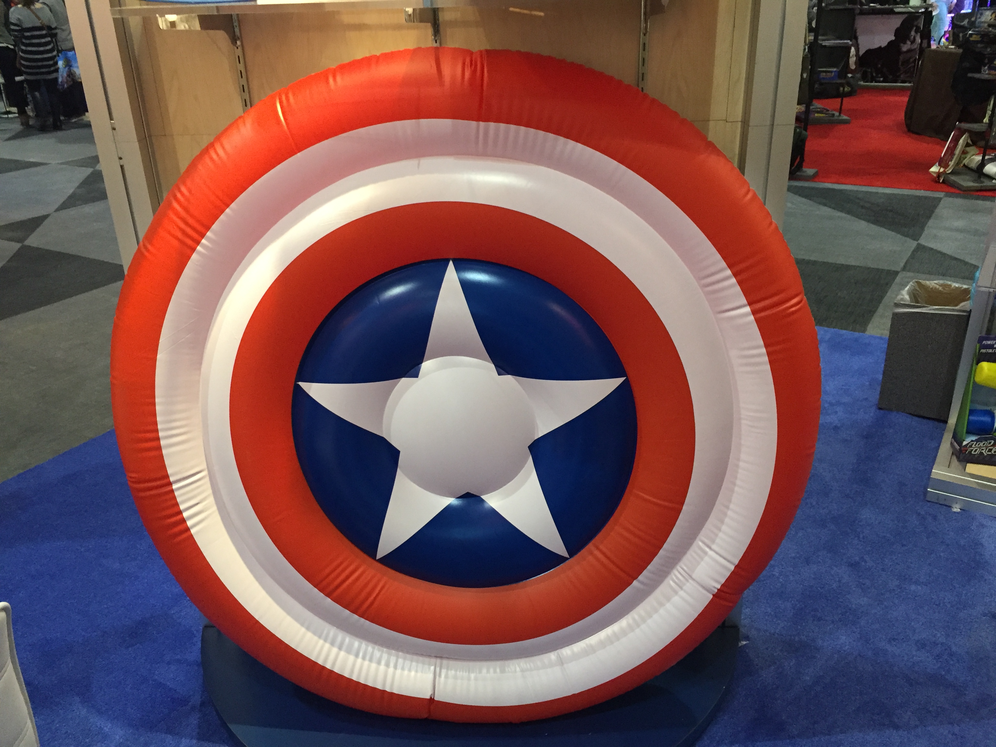 This Captain America shield is a full size float for kids and adults. How cool would you be on a hot summer day relaxing on your Captain America raft? Swimways also teased a Spider-Man raft coming just in time for the summer season.