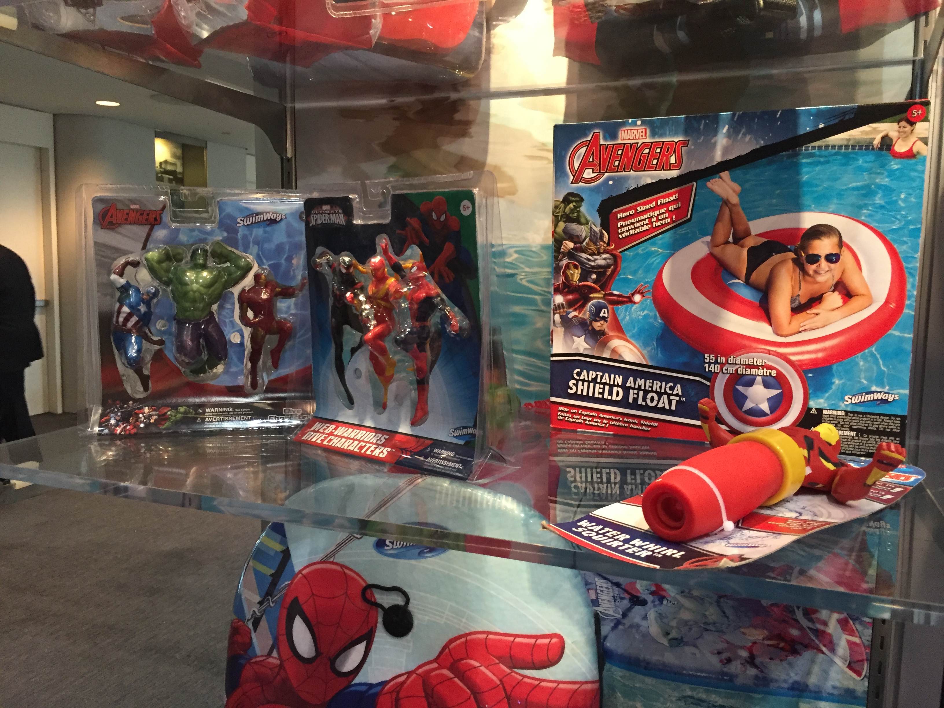 Swimways has dabbled with Disney Princess products over the years and their current lineup even includes some Frozen items, but none have been more successful than Ariel, The Little Mermaid. I grew up in the 1990's and most of my pool playtime was spent imagining myself in the movie and then-current animated series, so I can easily understand why Ariel has remained a successful pool toy license. Many of the products are similar to the ones for Finding Dory, but I wanted to take a moment to point out how attractive the Swimways inflatable water wings are. They have separated the characters from their background to make a three dimensional product and I think The Little Mermaid ones are particularly stunning.Marvel
