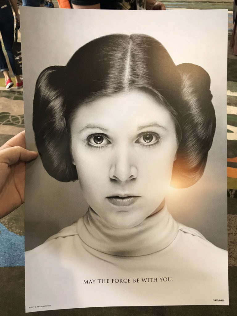 Kleenex should have sponsored the event because when they began a tribute to Carrie Fisher, eyes were definitely leaking. Kathleen Kennedy spoke about how important Leia and Fisher were to generations of women. "She will be remembered forever, even by those who are not yet old enough to say 'May the force be with you,'" she said. Fisher's daughter, Billie Lourd, gave an emotional speech about growing up with Princess Leia, thanking fans for the love they showed her. "When she surrounded herself by fans at Celebrations like this, she never felt more at home."