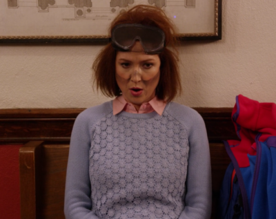 After a professor asks Kimmy about her time in the bunker, she discovers that Googleing her own name reveals the troubled past she's trying to move away from. Having a breakdown, she tracks down her former alcoholic psychologist Andrea (played by series creator Tina Fey). "To quote Elsa,'Let is go,'" she tells Kimmy. Although this Disneyism is discredited by her next line. "Elsa was my boyfriend's wife. I grabbed her hair at a high school basketball game."
