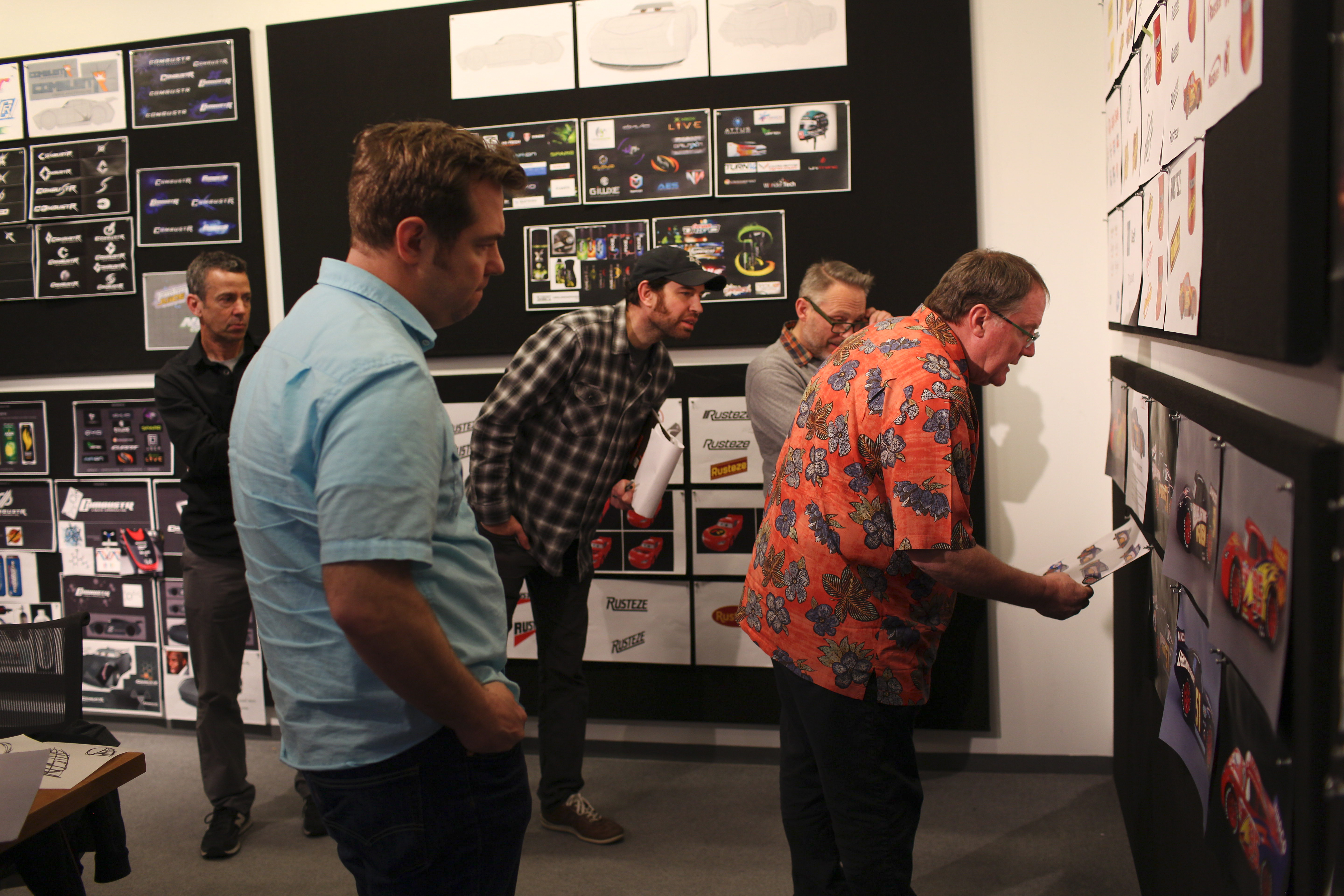 “Probably one of the things John [Lassiter] loved the most was the design of Jackson Storm and the next generation racers,” recalls Fee. “John invented Lightning McQueen and John loves the way Lightning McQueen looks, but he wanted to make sure that when Jackson Storm pulled up next to Lightning McQueen, McQueen looked old. John was ready to go there, ‘Let’s make McQueen look outdated.’”
