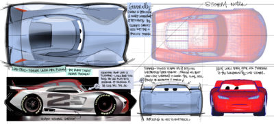 “Storm’s design achieves all we set out to do,” Shuster boasts. “We gave McQueen a rival that completely defines the next generation and we exploited the shape and the paint and the graphic to yield a character that needs very few words to express his intentions.” Audiences can see Lightning McQueen go head-to-head with Jackson Storm on June 16th when Cars 3 races into theaters. Next time, we will look at another new character, the lovely Cruz Ramirez.