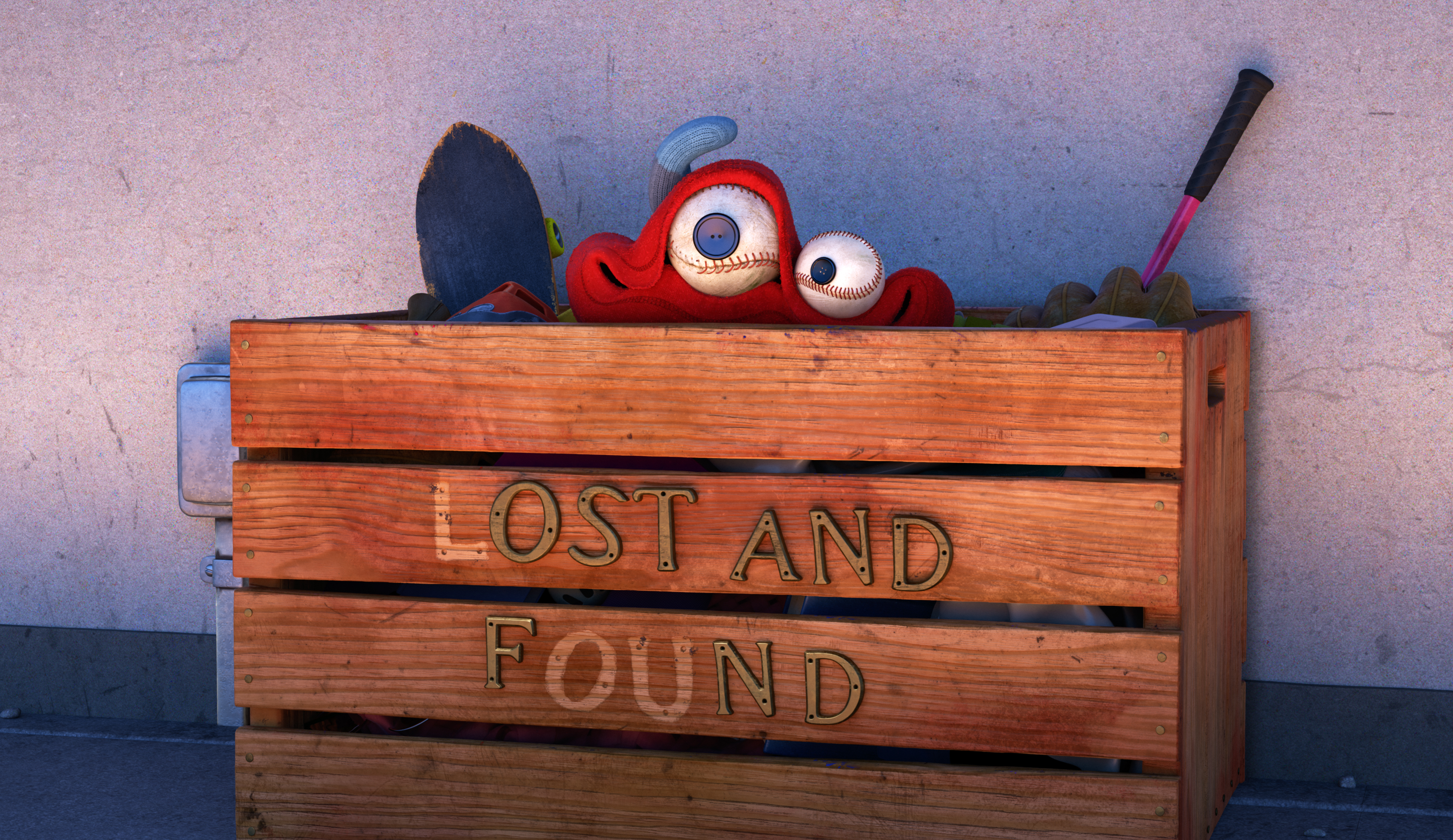 One of the many ways that LOU stands out from every short that has come before it is the design of the title character. “I enlisted my wife, Lisa, who is a stop motion animator, and asked her to build an actual LOU maquette. I fell in love with it and we discovered this very cool thing about using real objects. You can get expressions just from turning the baseballs, so if you turn them in you’ve got an angry expression, you turn them out he’s kind of surprised. This is when LOU really started to come to life.”